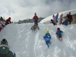 さすが、野尻っ子。雪に負けじと、果敢に登っていました。
