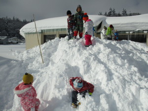 しかし、週末の大寒波により園庭は真っ白く変身しました。