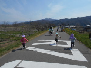 子どもたちが外の気持ち良さを味わったり、開放感を味わったりでき、楽しい散歩になりました。