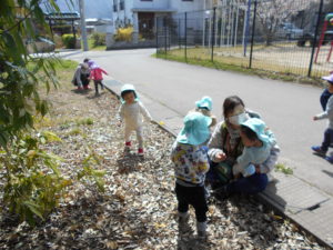 泣いていたお友達も外に出るといろんな物を見つけ、ご機嫌に♪