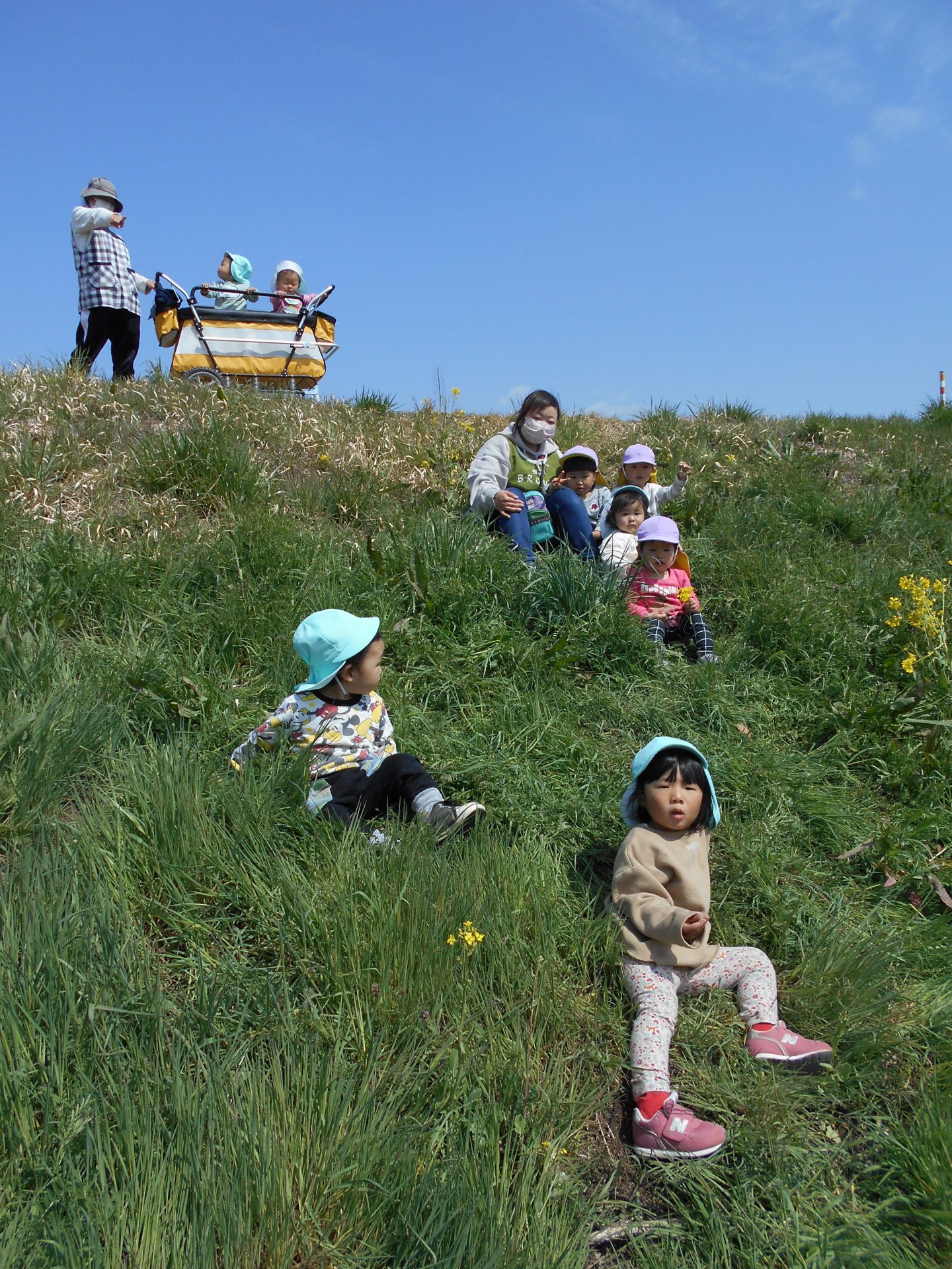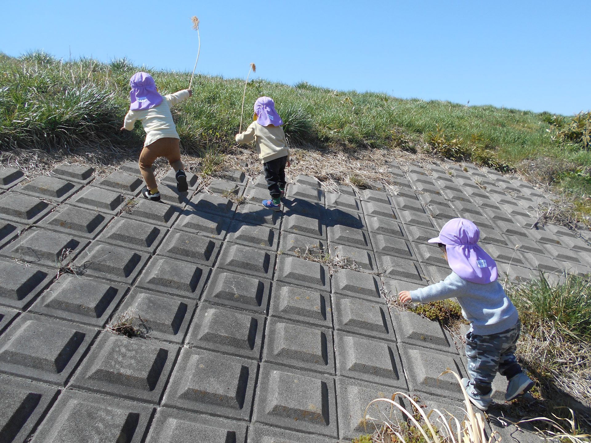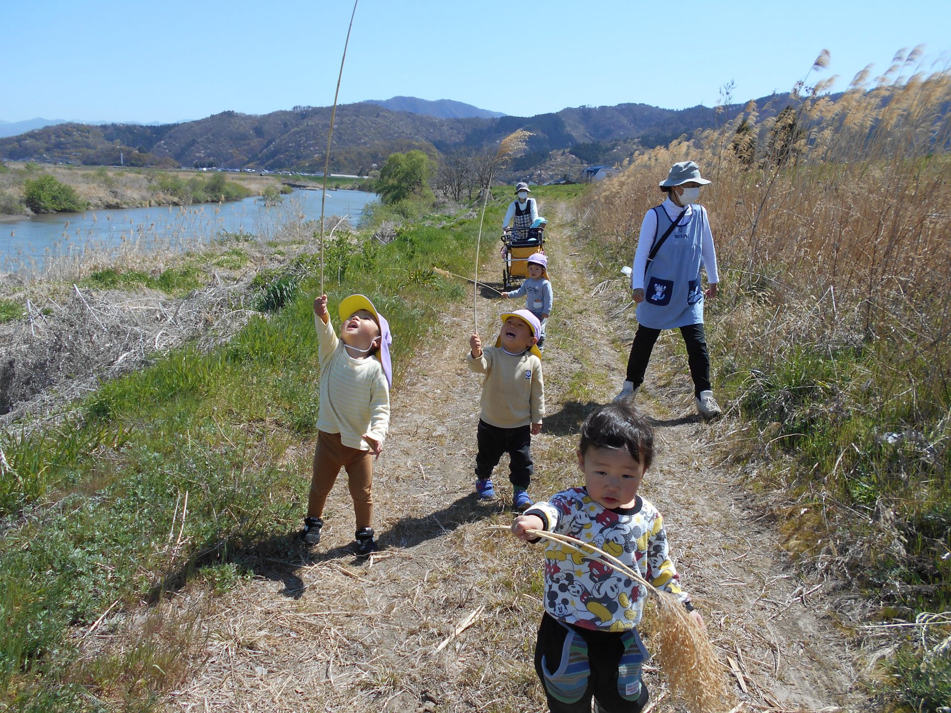 泣いていた子ども達も土手でいろいろなものに触れることで、ご機嫌になっていたのでたくさん自然に触れることの大切さを感じました。