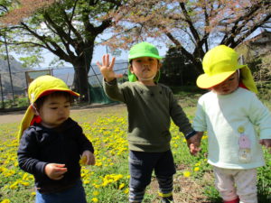 新入園のお子さんも、お散歩をしている時は、泣いている暇がありません。