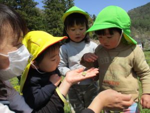 保育士が愛情を持って、自然にかかわる姿を見ることで、