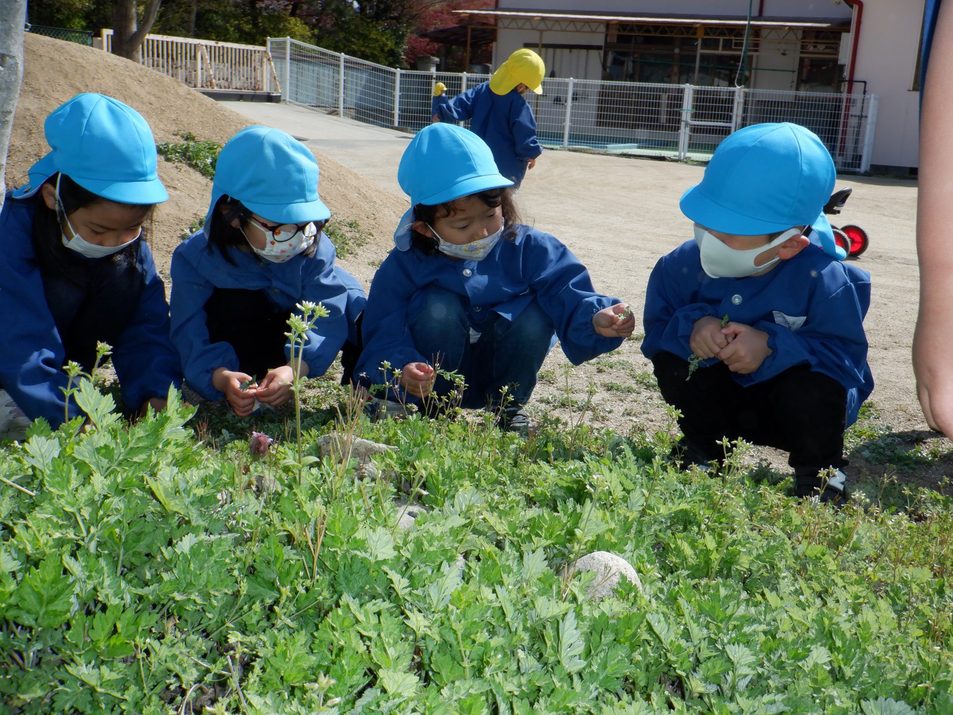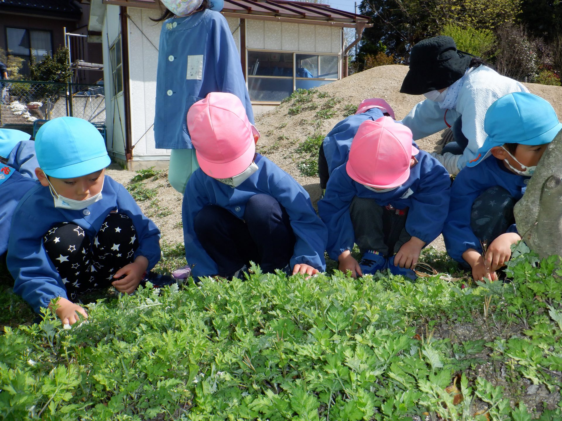 年中さんや年少さんのお友達も真似をして摘む姿もありました。