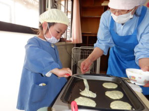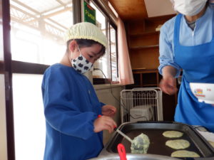 自分の分を焼いて、小さいお友達の分もお手伝いしてくれました。