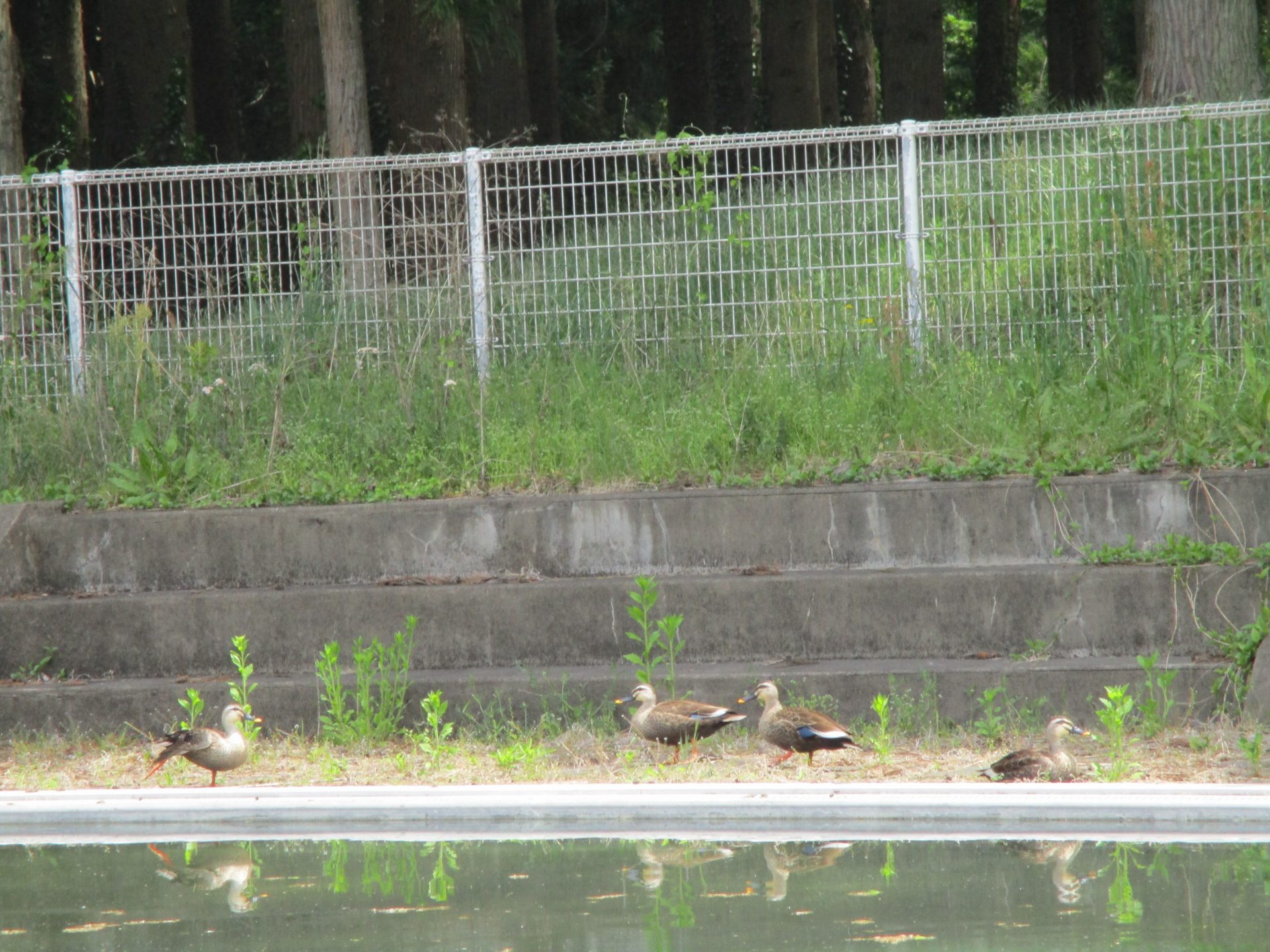 小学校のプールにカモ発見!!