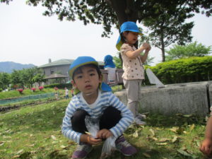 年中トムソーヤ組の子ども達は、選んで摘んだ葉っぱや花を