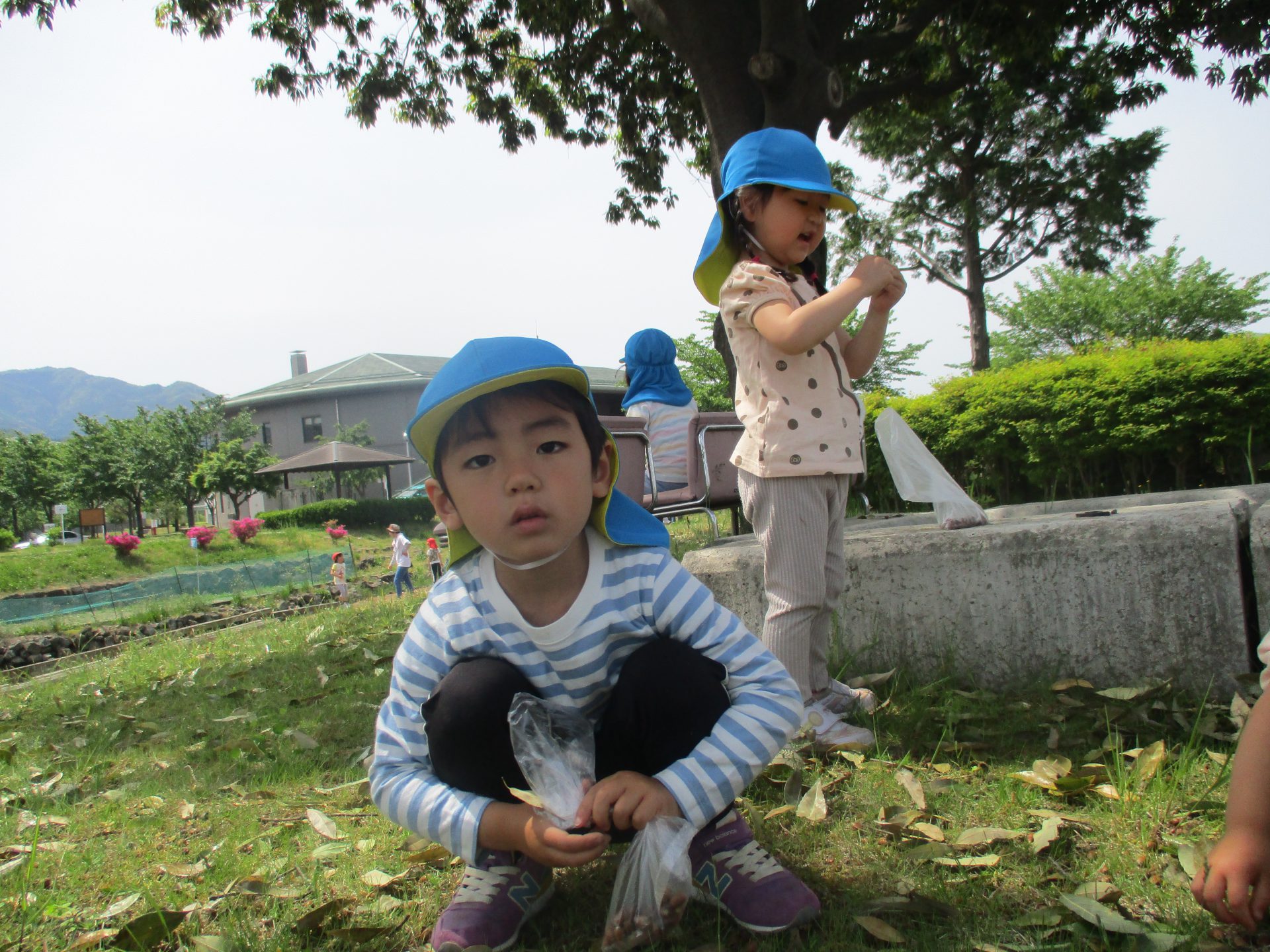 年少ピノキオ組の子ども達は、小さなどんぐりがたくさん落ちているのを見つけました。