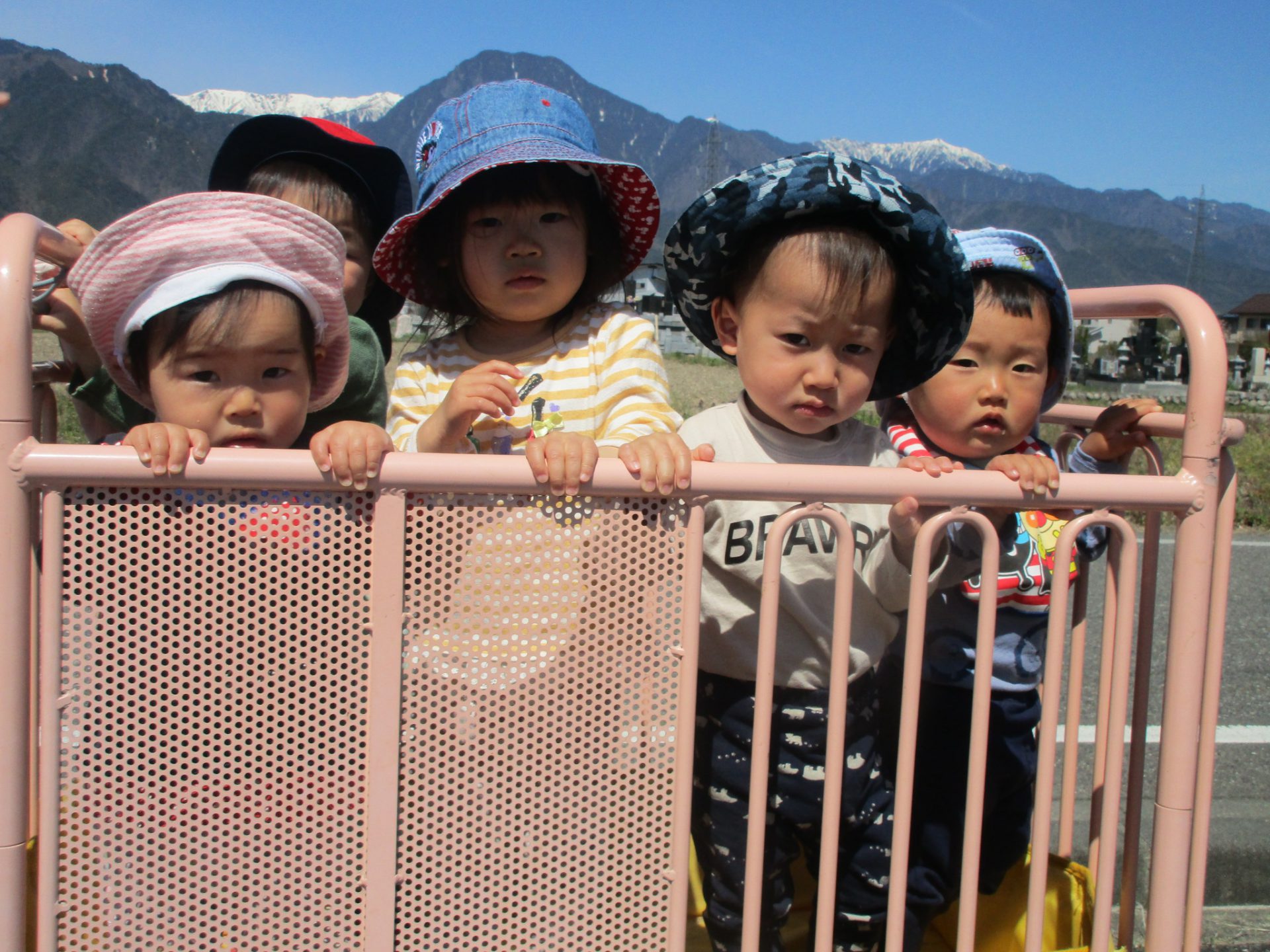 「お山、大きいね。」「あ!ちょうちょ!!」「きいろ…」「本当だ。白いのもいるね」