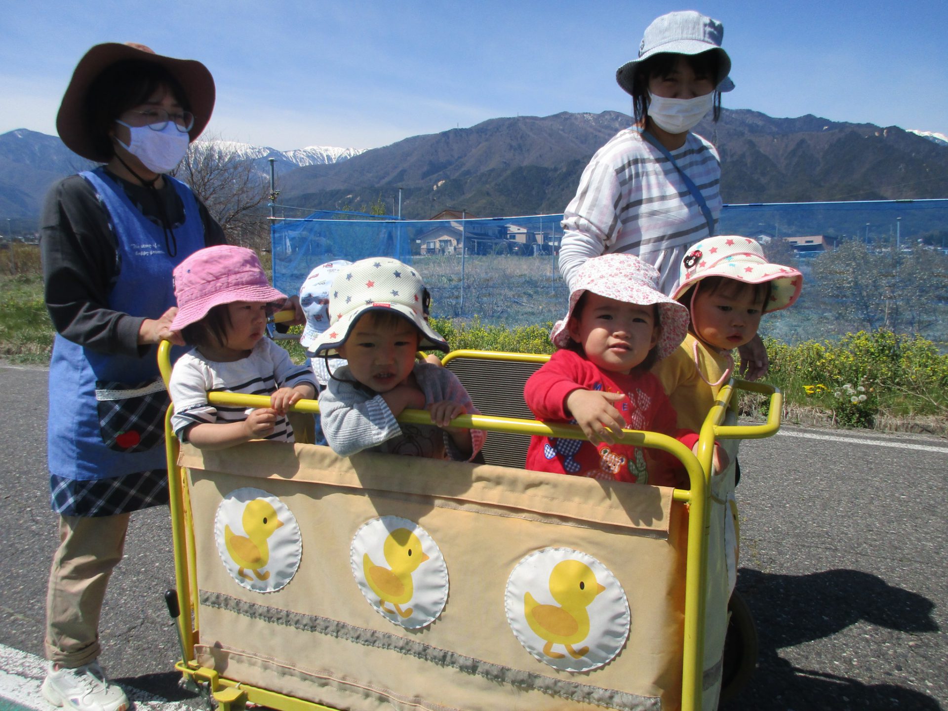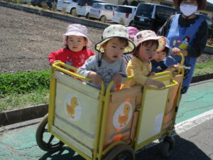 知っているチョウチョの歌を、お友達や先生と歌いながらのお散歩となりました。