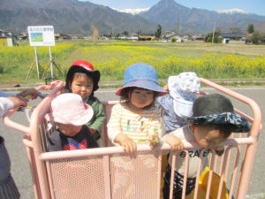 「わ~い」「よく晴れていて風が気持ちいいね。」