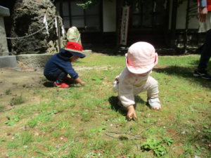 ふかふかの土・草の上を歩いていろいろ見つけたね。