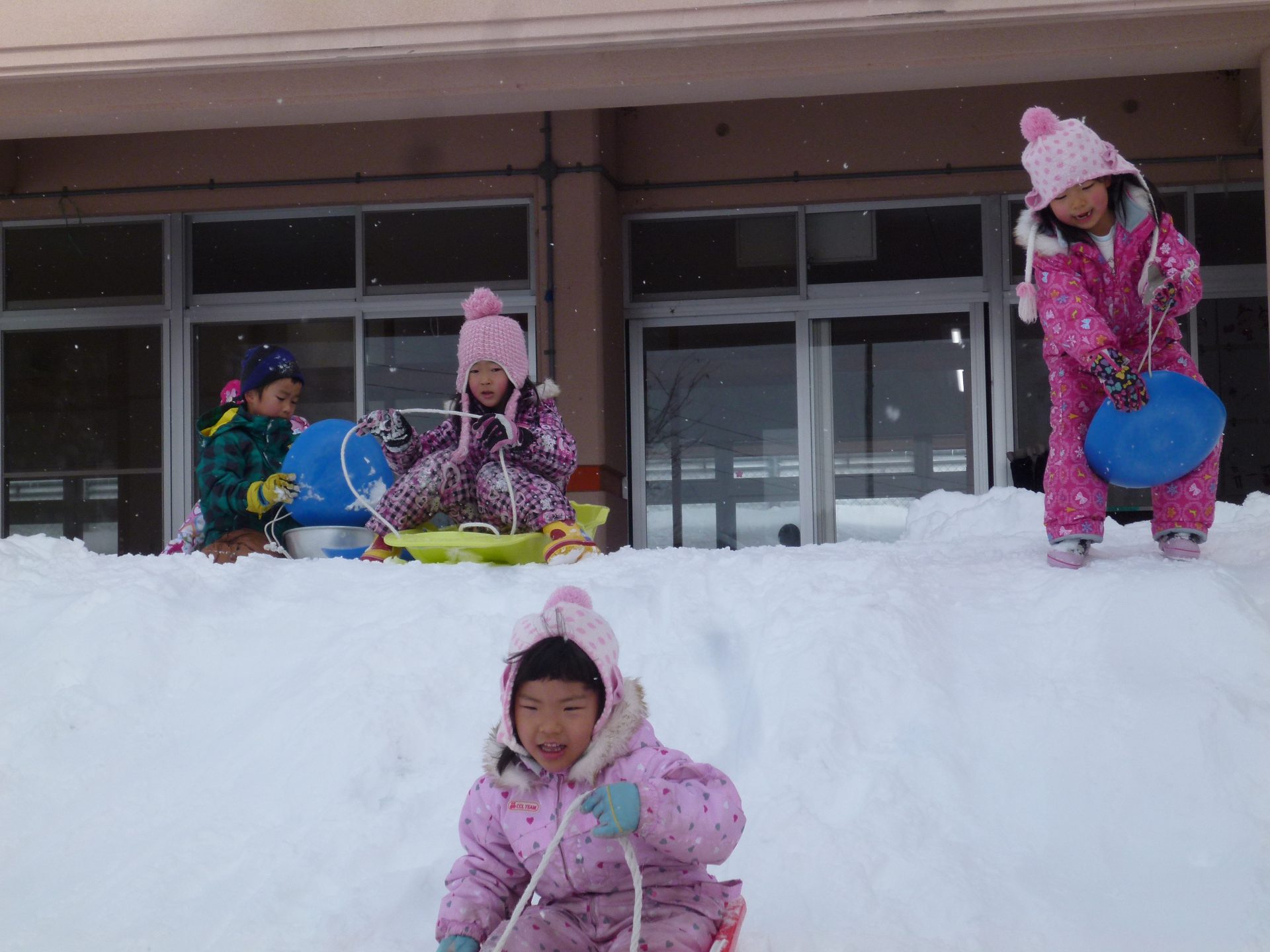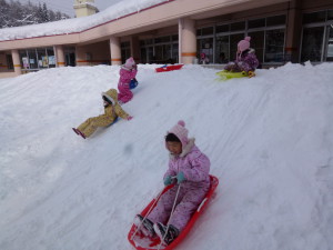 今日はその中でソリ遊びをしていた子どもたちの様子を・・・