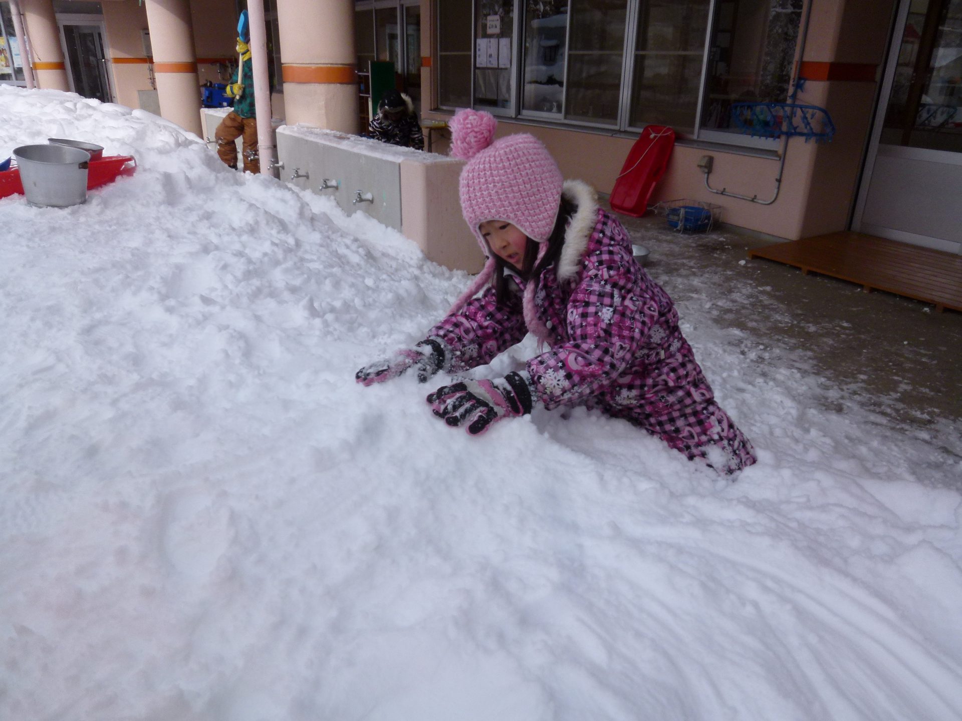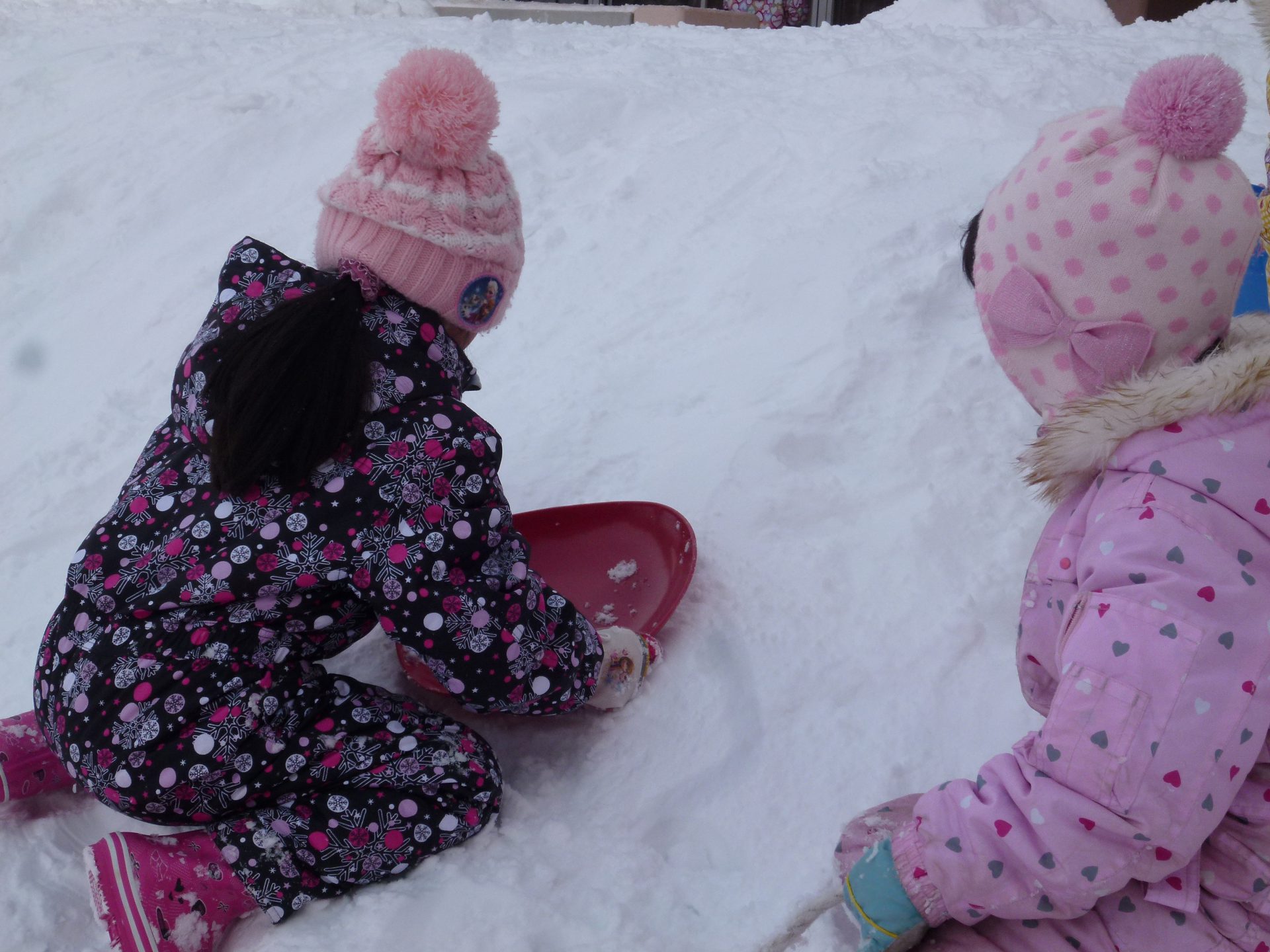子どもたちは毎日のように雪に親しみ思い思いに雪あそびを楽しんでいます。