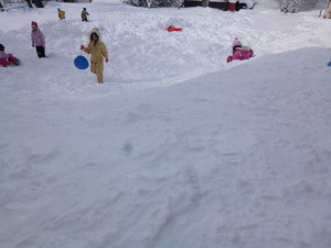 最近の子どもたちの雪あそびは、主にかまくら作りにソリ遊びがブーム。