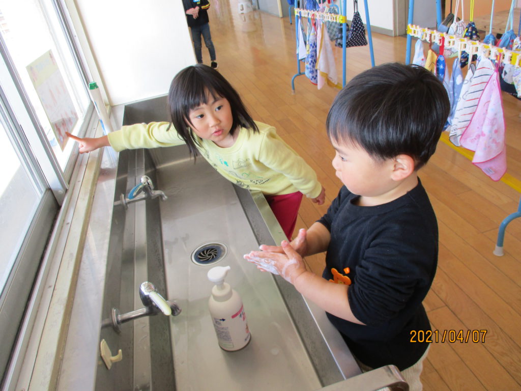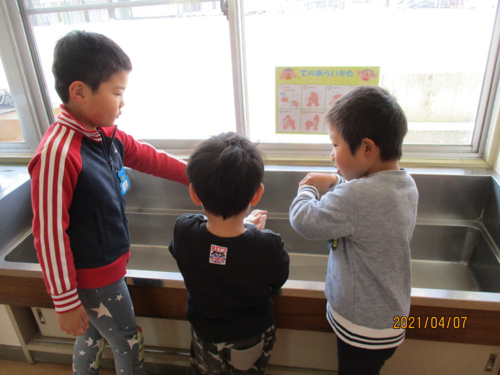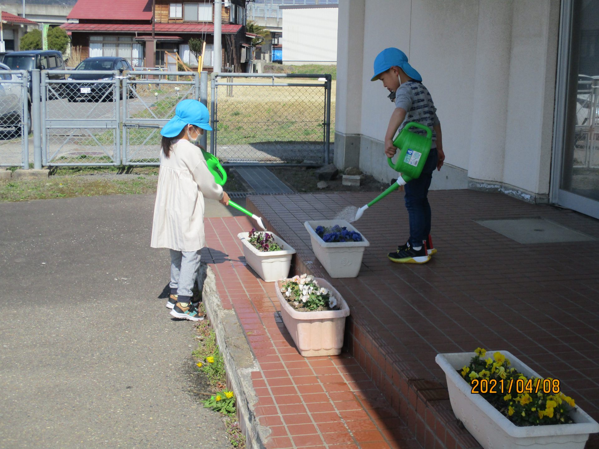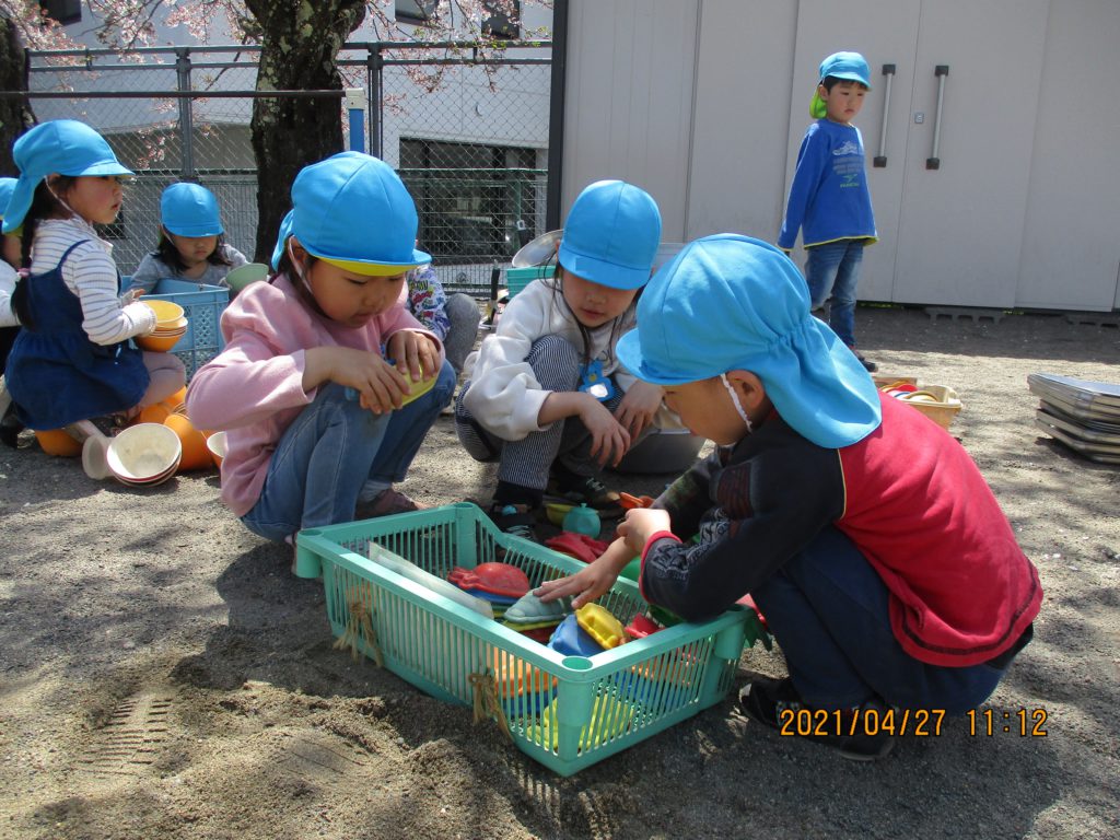 保育園で1番大きな年長さんになったぶどうぐみの子どもたち。昨年の年長さんの姿を思い出して、砂場道具を用意したり、花の水くれをしたり、小さい子のお世話をしたりと張り切っています。