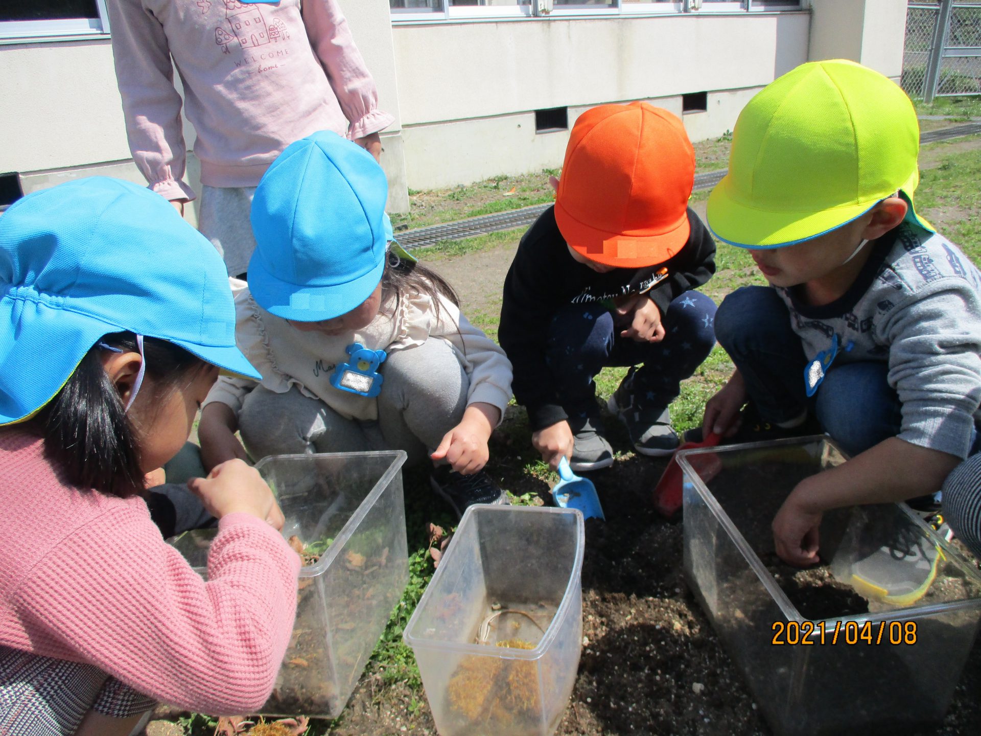 3歳児の頃に飼ったカエルの干からびてしまった死も子どもたちの心には残っていて、今になってだんだんその理由も分かってきているようです。それをカナヘビの死の時に思い出している姿を見て、繋がっていく保育をしていきたいなと思いました。