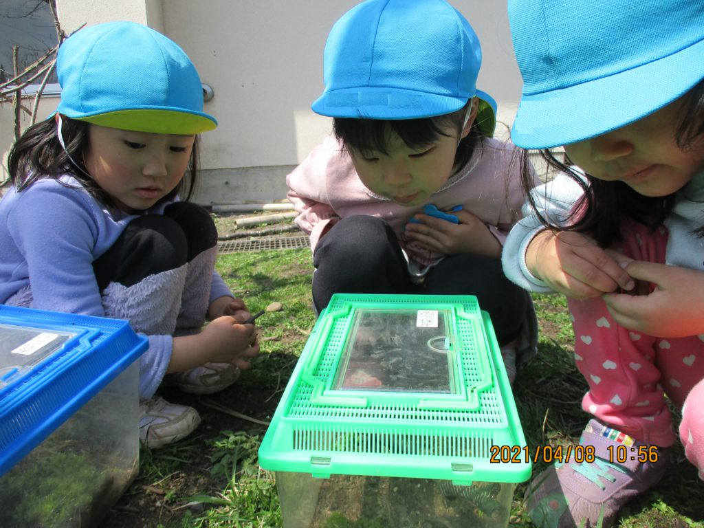 ちょうど1年前の今頃…園庭や園舎裏のわくわく広場、子どもたちの下駄箱などで捕まえて大切に飼ってきました。
