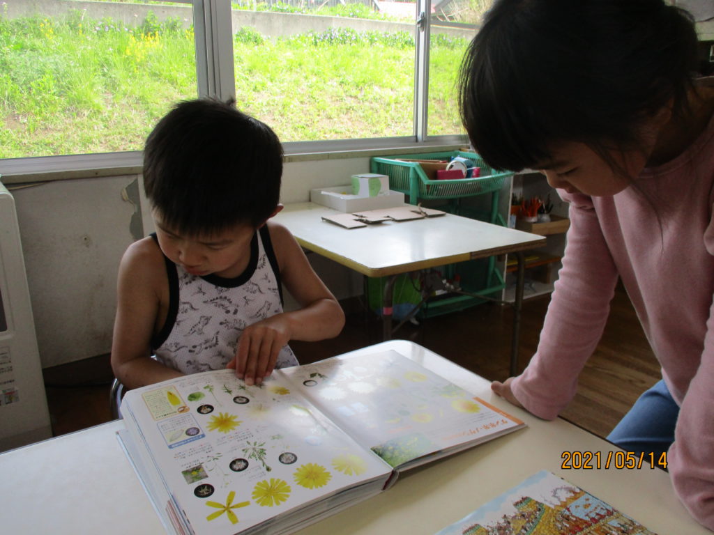 植物の名前にも興味を持ち始めました。そこで、図鑑を開いて「んー???やっぱり朝顔のかたちと違うなぁ。」