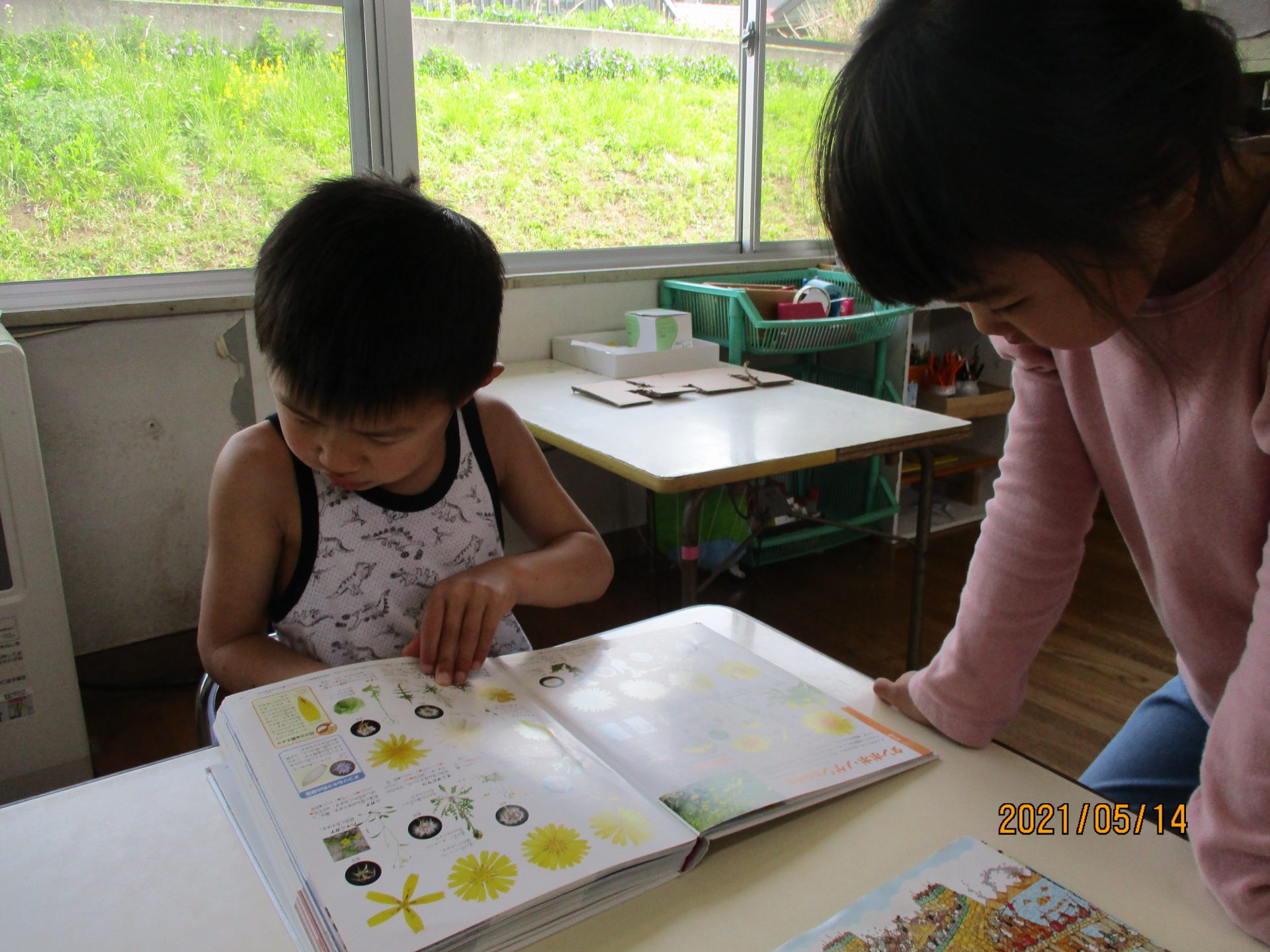 実際に草花を摘んできて、図鑑で名前を調べたり、じっと観察しながら絵に描いたり…