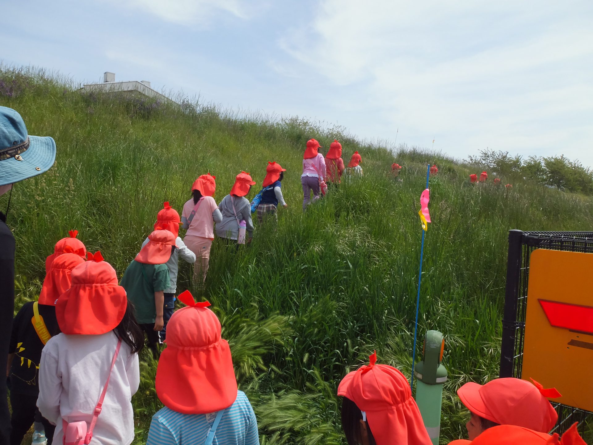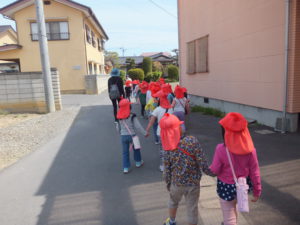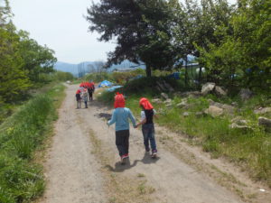 今日は、にじ組にとって初めての土手への散歩です。