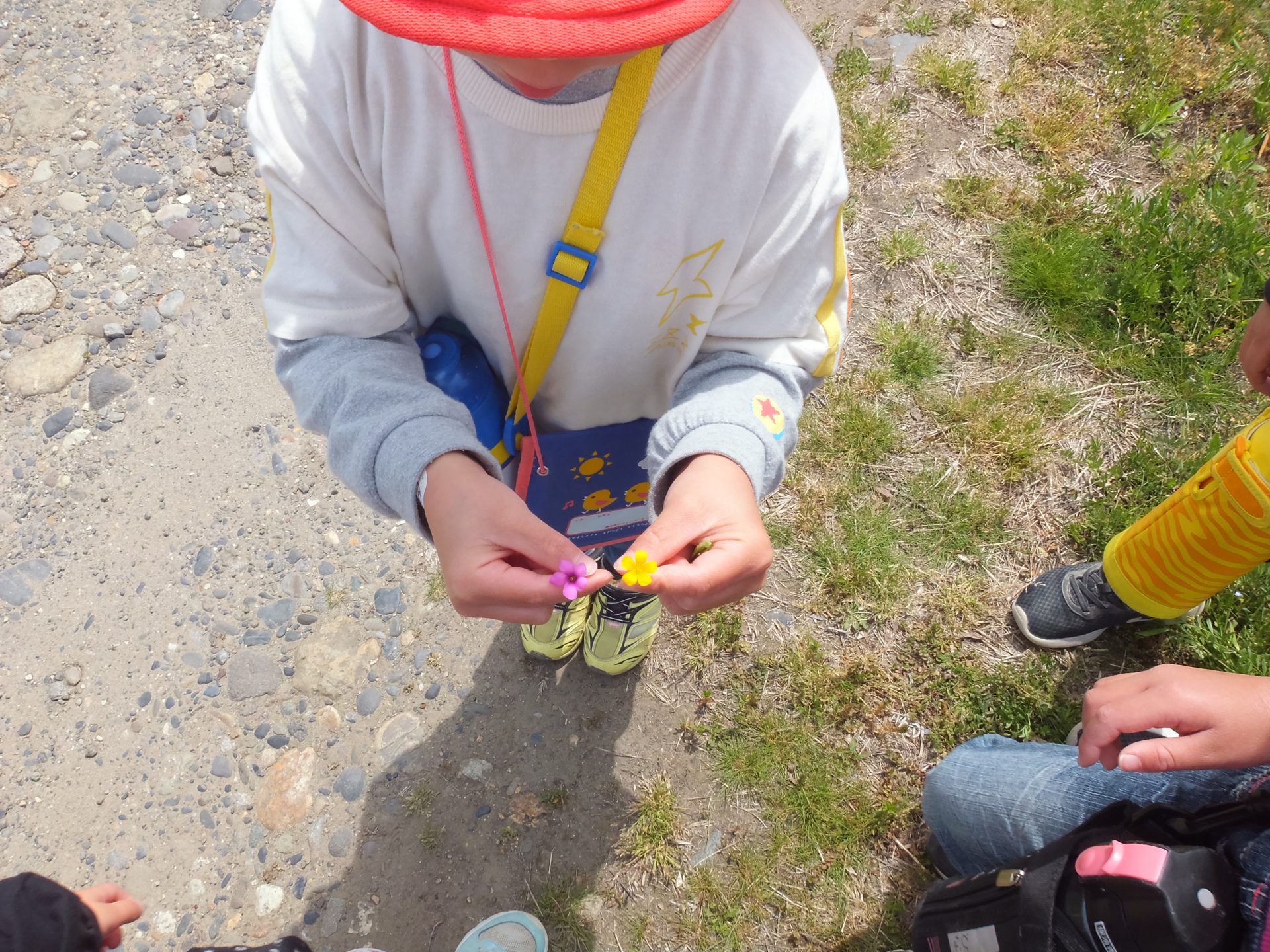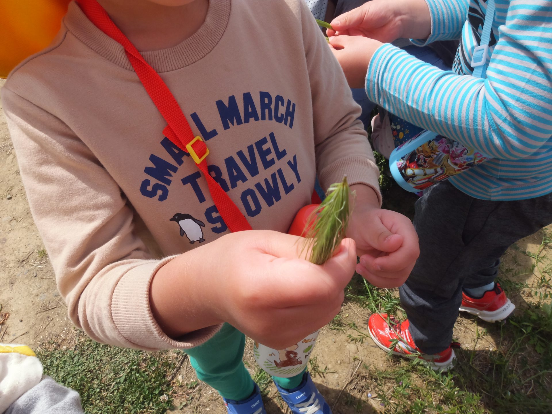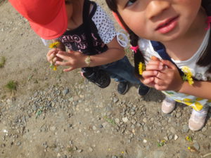 笛になりそうな、太いカラスノエンドウはあまりなかったのですが、広ーい原っぱで思い切り走ったり、草花をたくさん集めて遊びました。