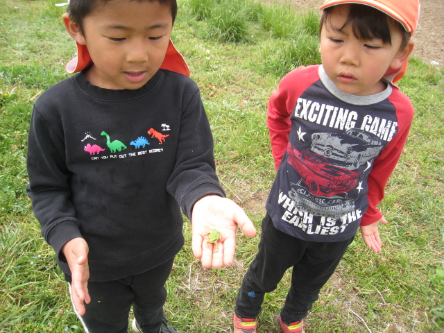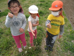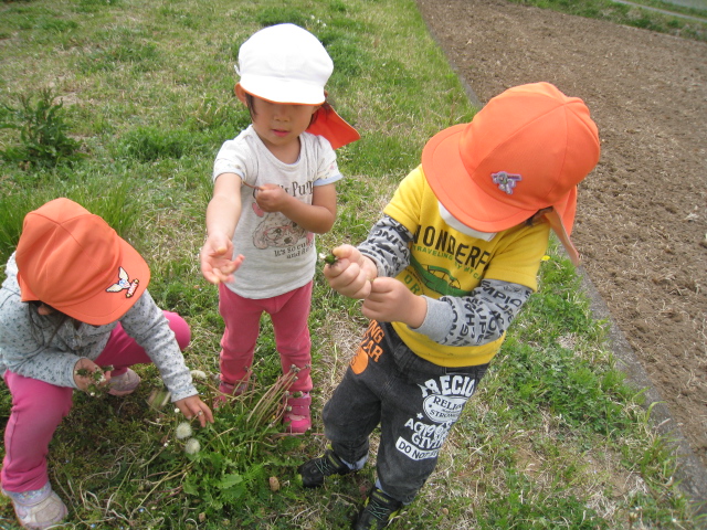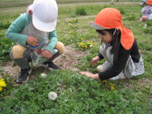 タンポポの茎を使ってタンポポ笛を鳴らしているお友達もいました。