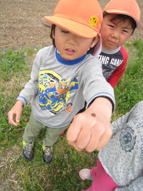 原っぱにはカエルやテントウムシなどの虫もたくさんいます。