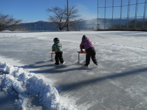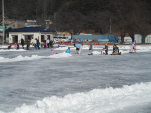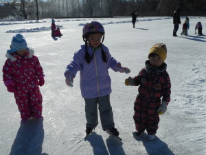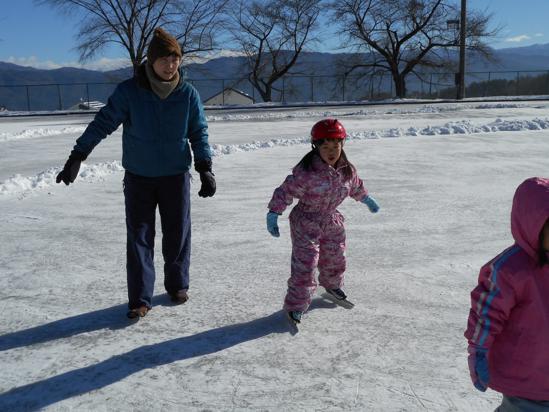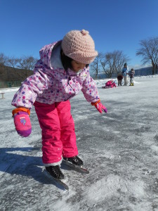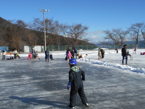 1月10日からする予定だったスケートですがなかなかリンクが凍らず1月17日に第1回目がようやくできました。この日はお母さん先生(保育参観ではなく実際に保育に参加していただくのでこう呼びます)10人と一緒に初滑りを楽しんできました。