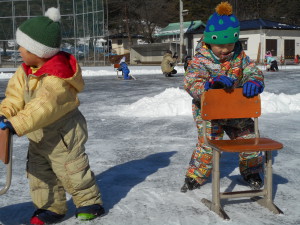 1時間もしないうちから年長の子供たちは感覚を取り戻して椅子無しで滑るようになりました。