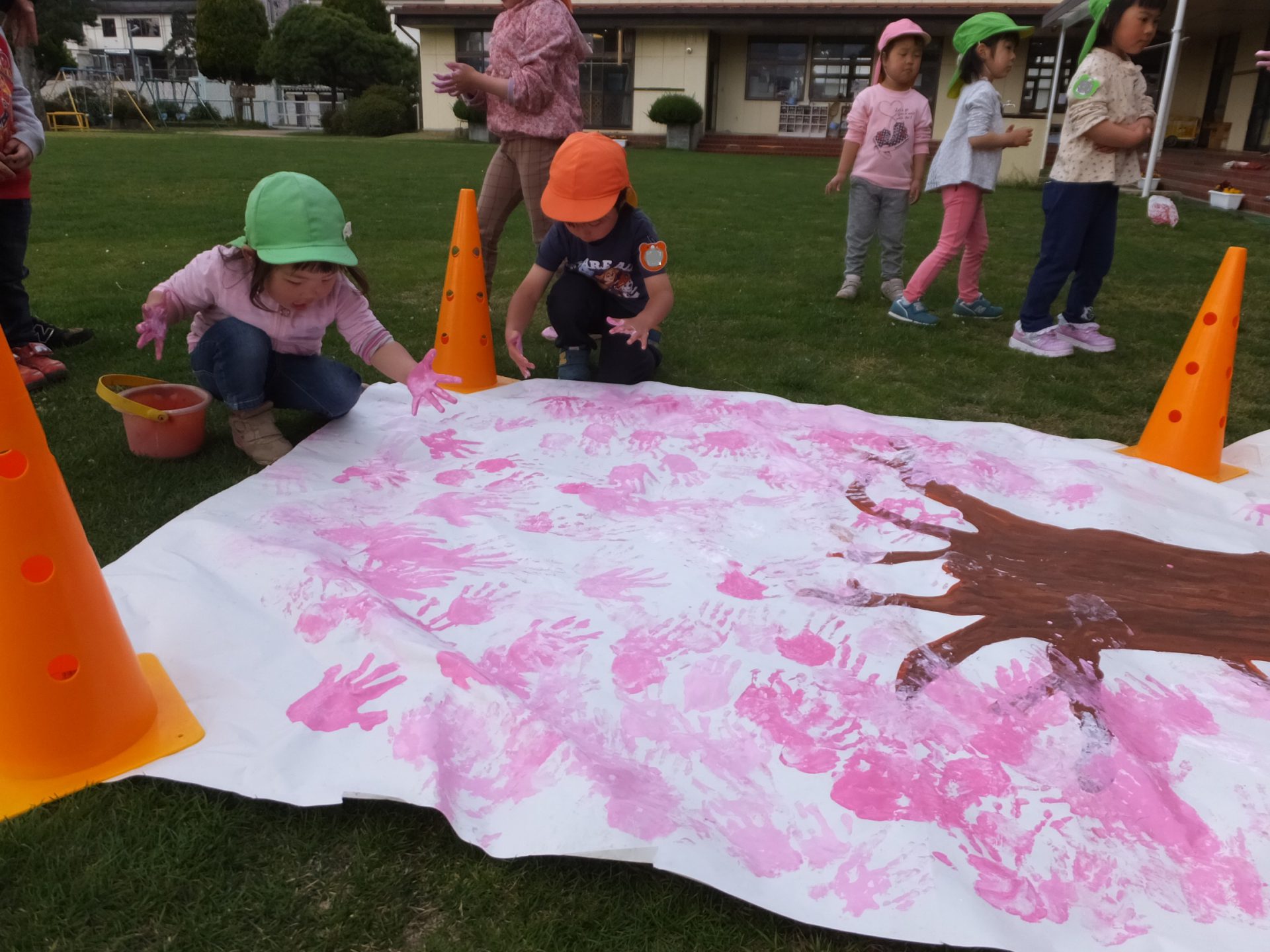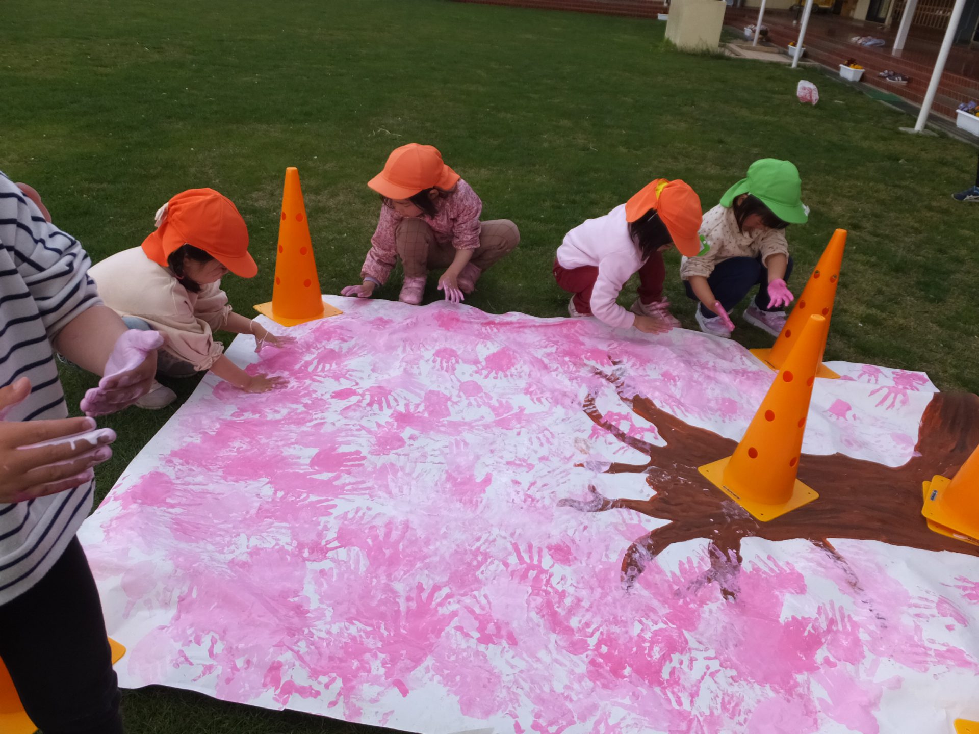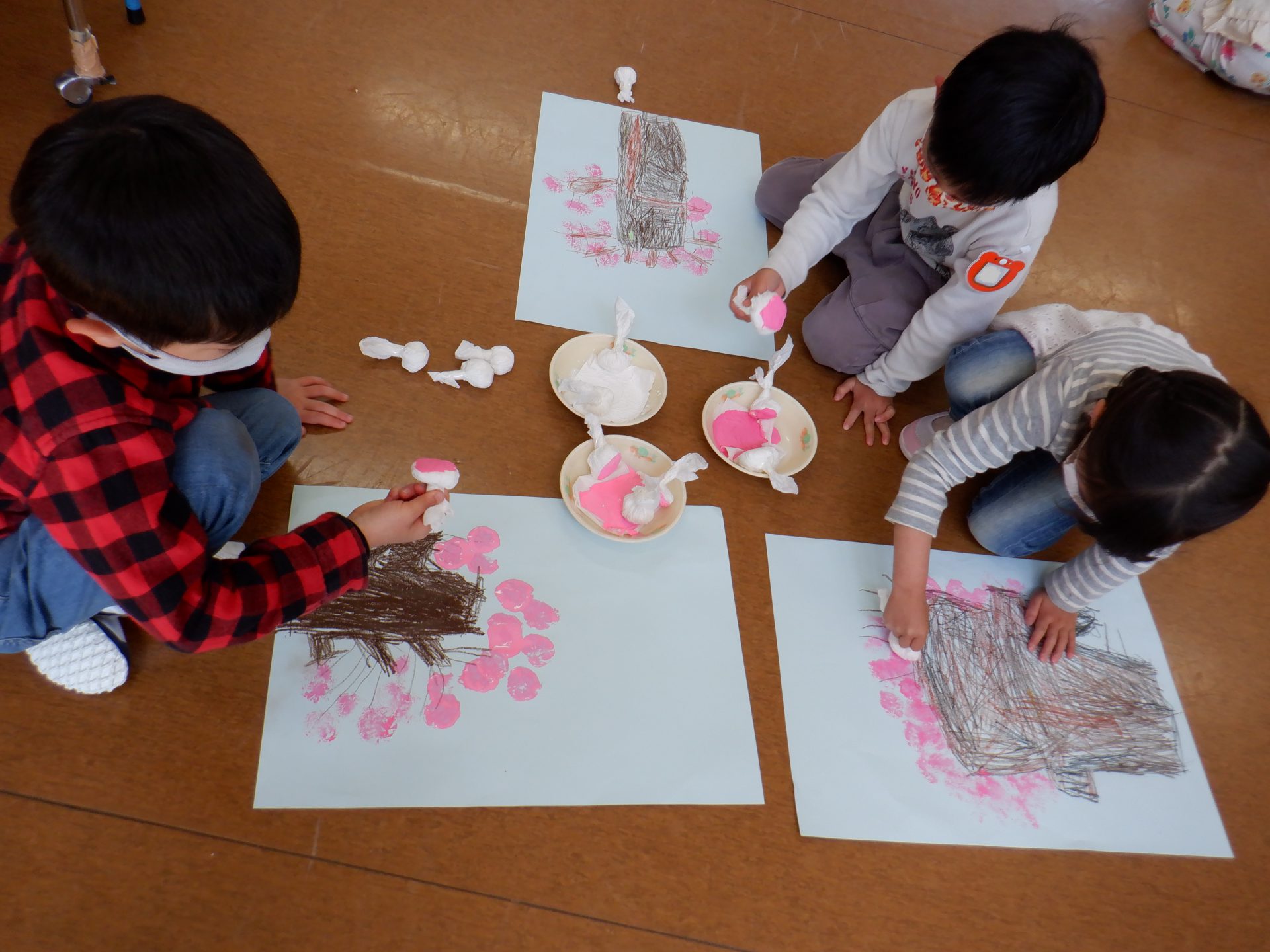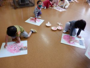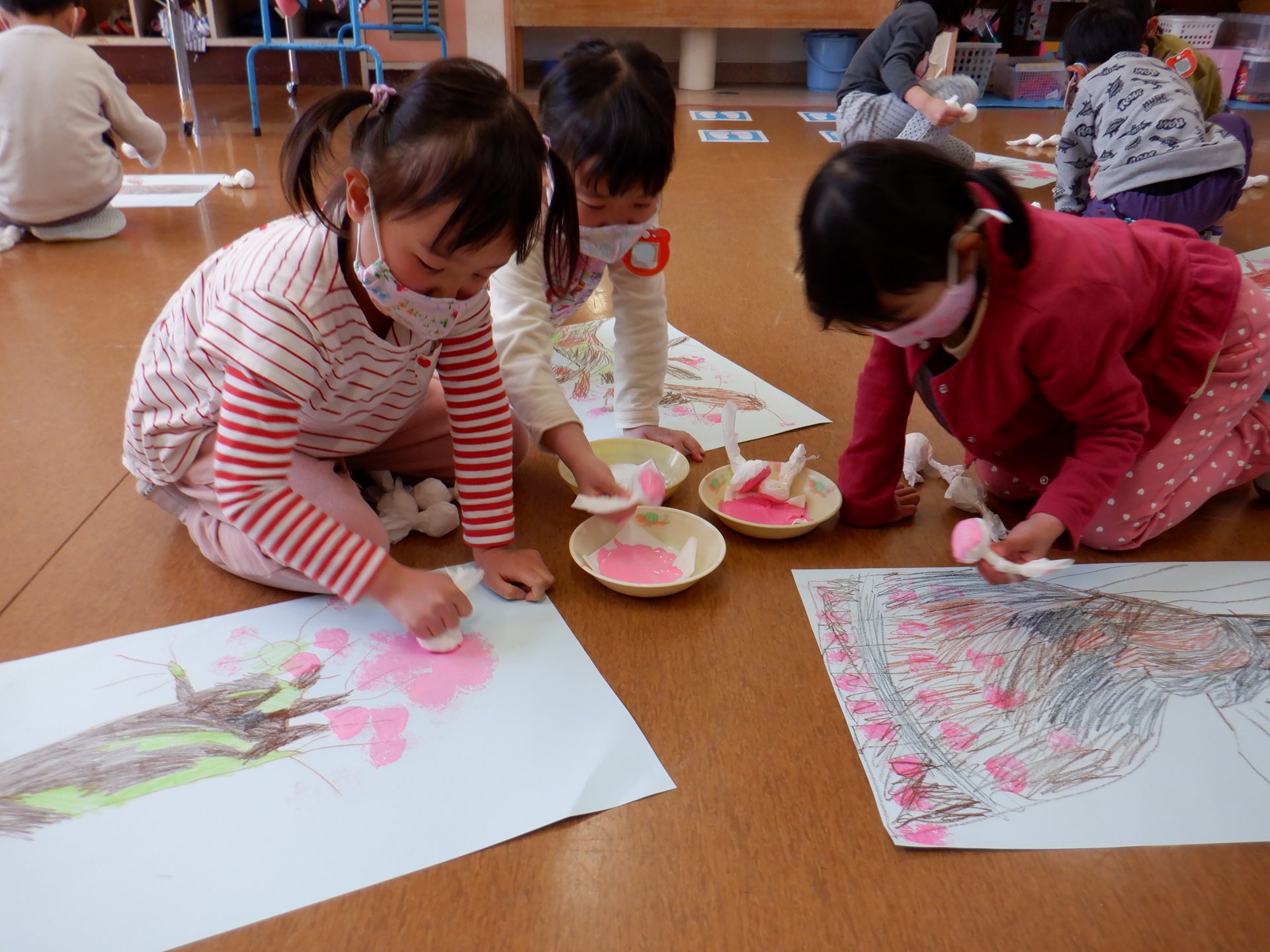 桜の花は「ピンク」「うすピンク」「しろ」・・・と子どもたちの声から3色用意しました。