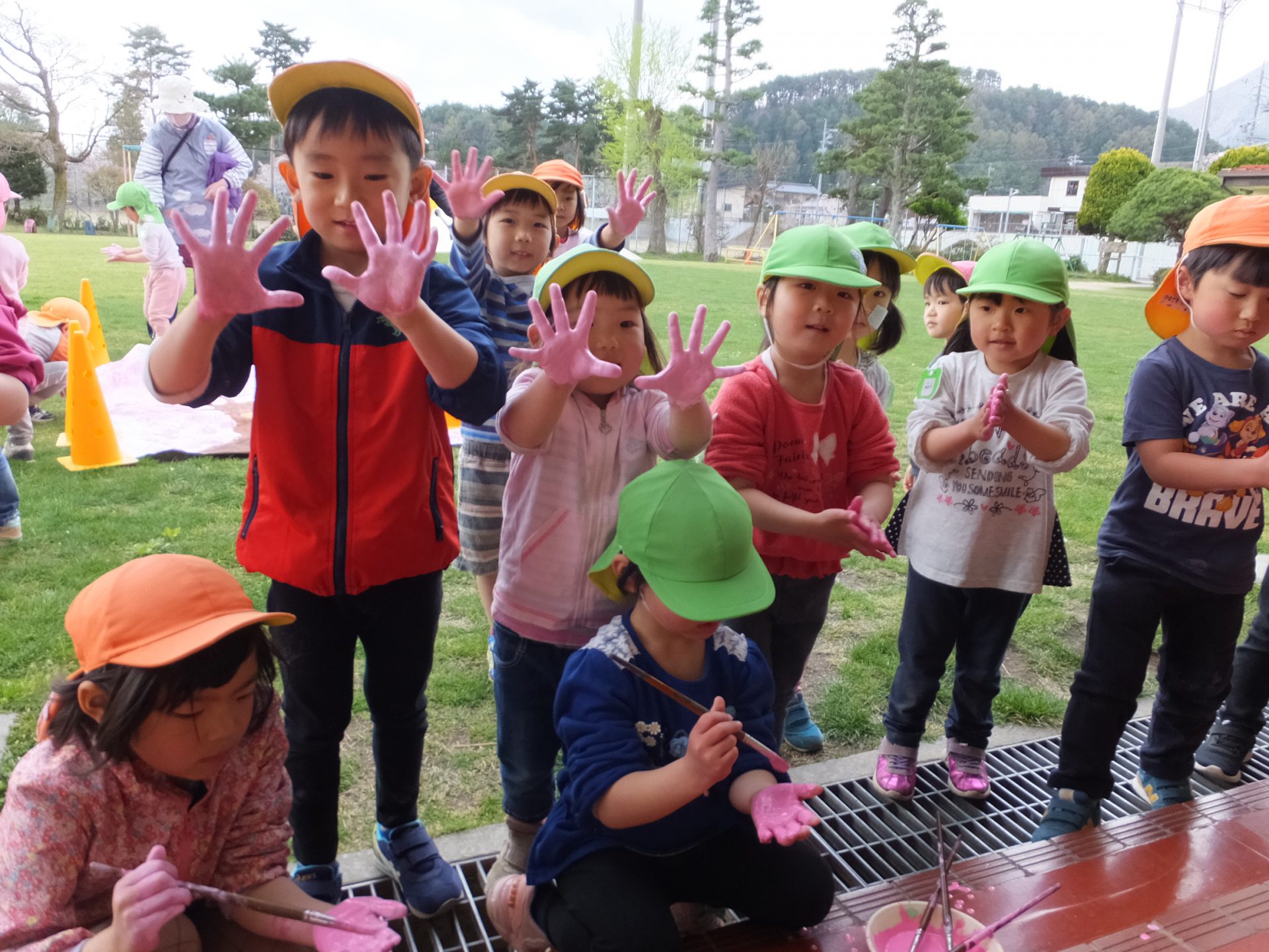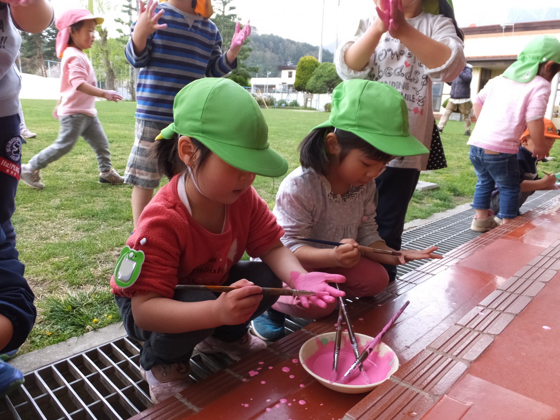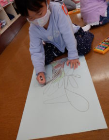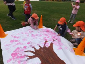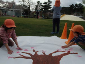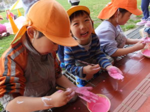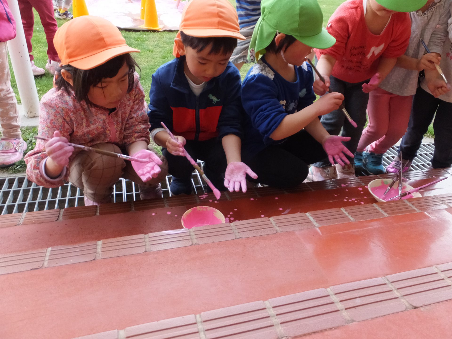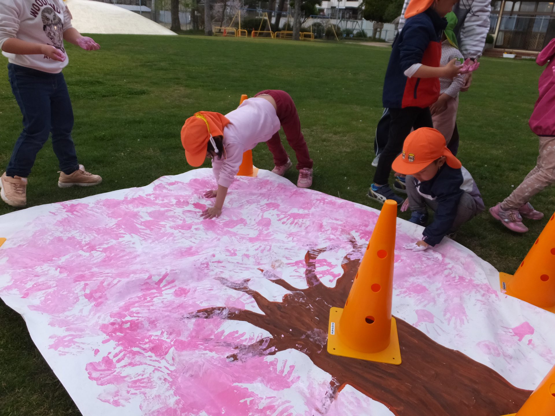 桜の花は「ピンク」「うすピンク」「しろ」・・・と子どもたちの声から3色用意しました。