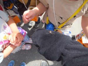 ・いっぱい歩いていっぱい遊んだら、おなかがすいちゃった。帰り道は疲れたけれど、やる気スイッチを入れて、頑張って歩いたよ。