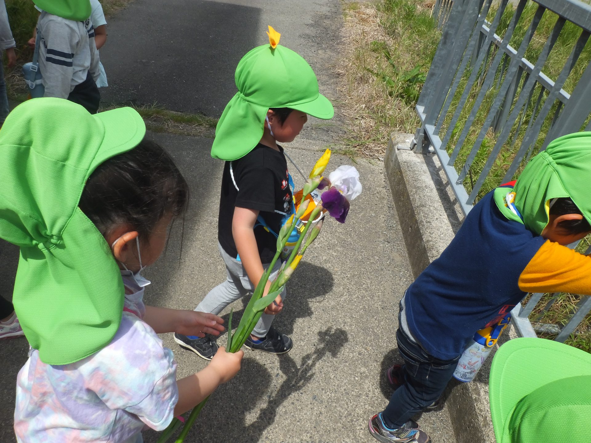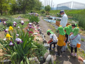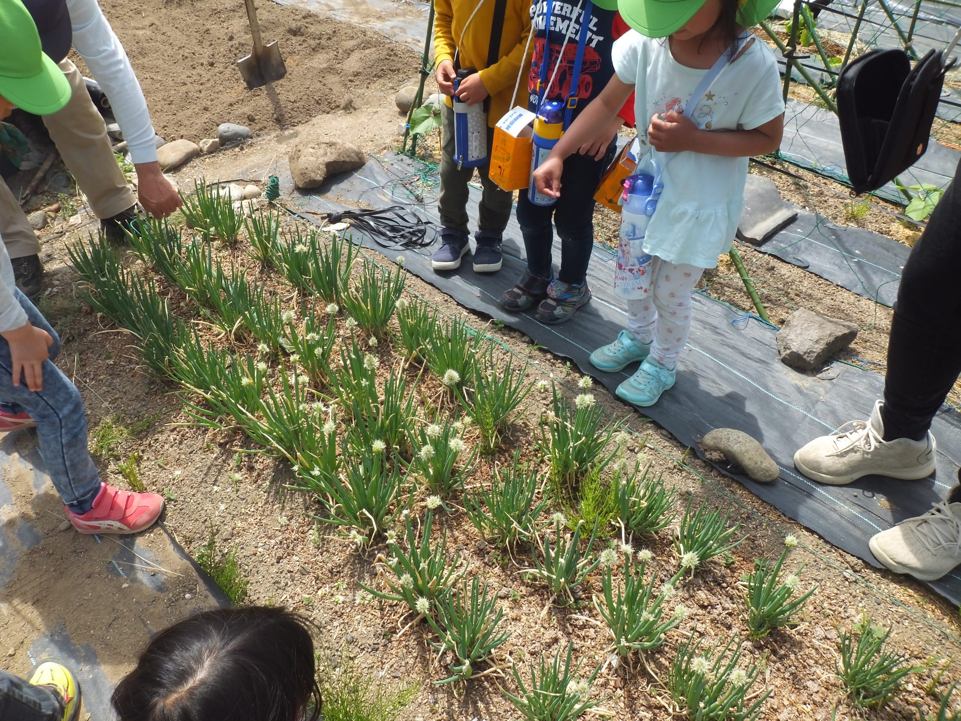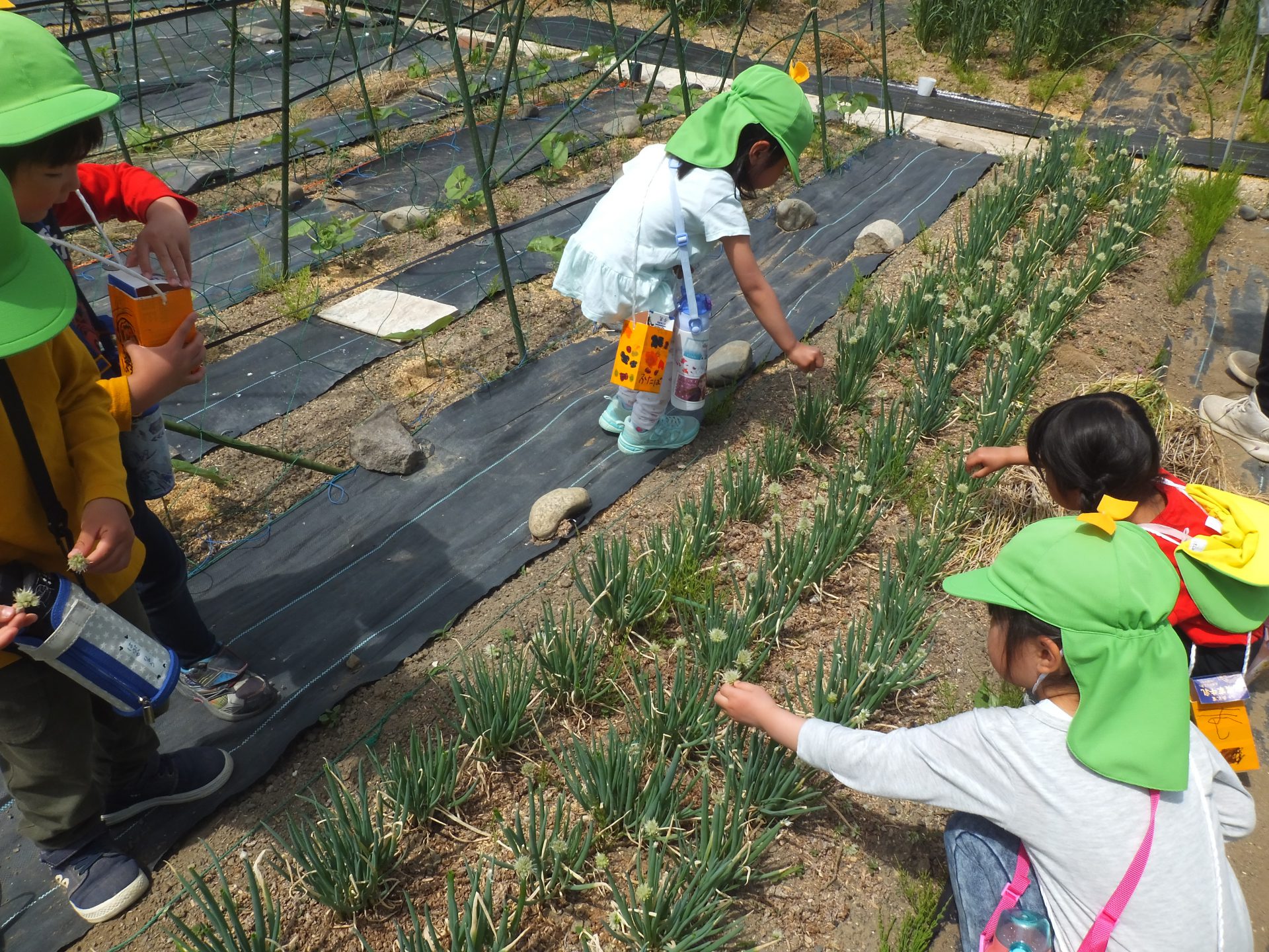 子ども達も、ねぎぼうず摘みのお手伝い。