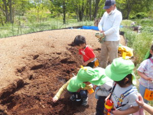 見つけた小動物は、保育園で飼い、子ども達と成長を観察したいと思います。