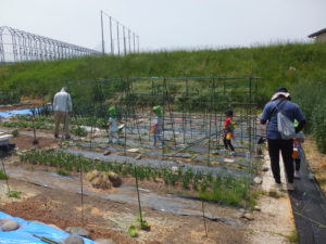 野菜も見せてくださいました。野菜畑は、迷路のよう。