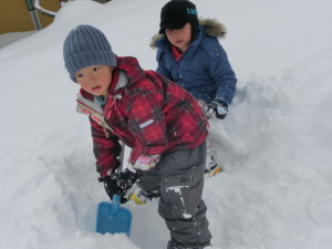 「はやく、かまくらつくろうよ!」「一緒にやろう!」