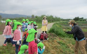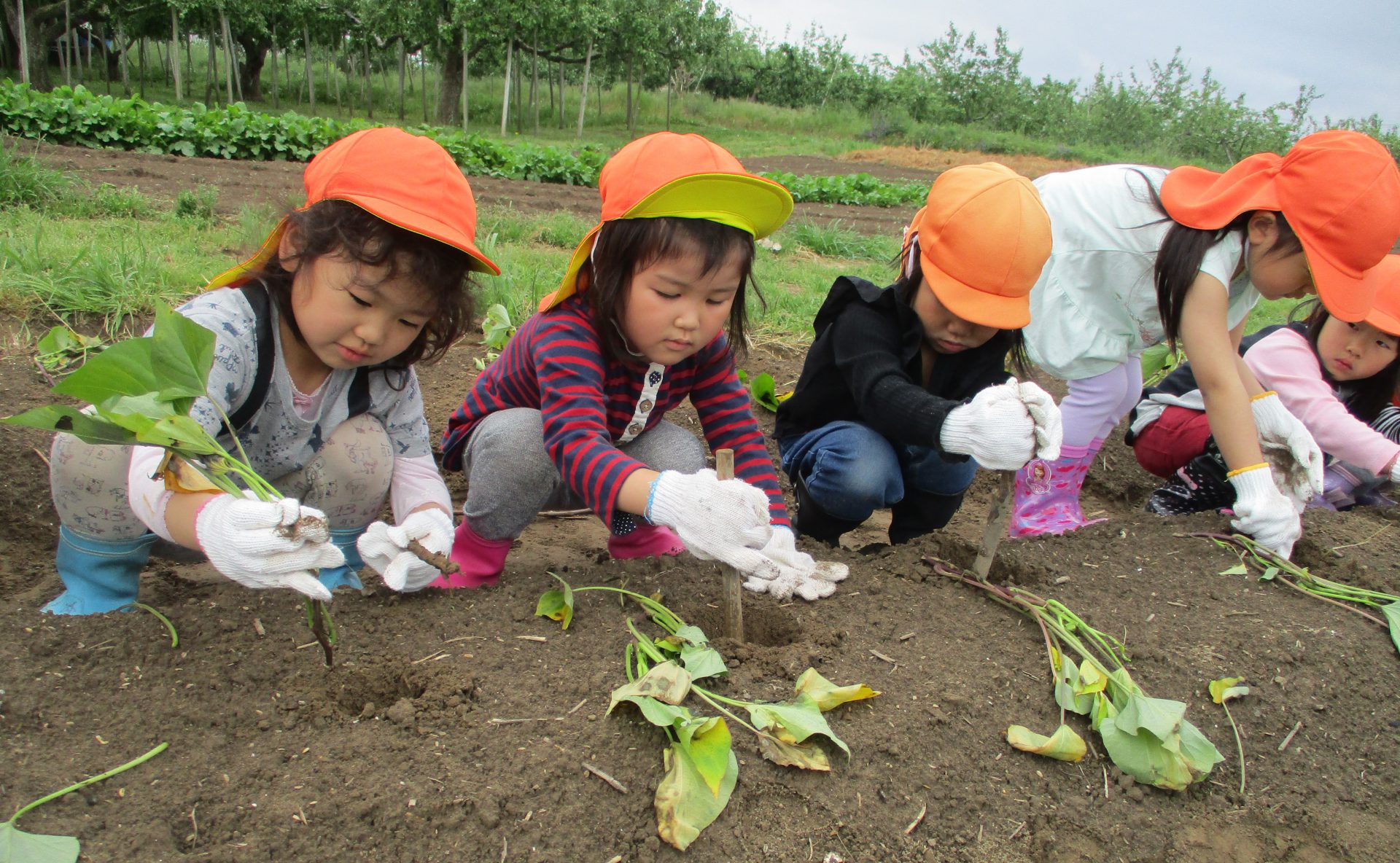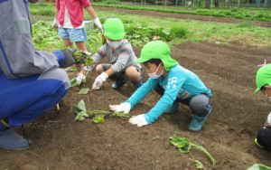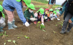「この赤ちゃんを、寝かせて植えるとたくさんのお芋。立てて植えると大きなお芋になるんだ」