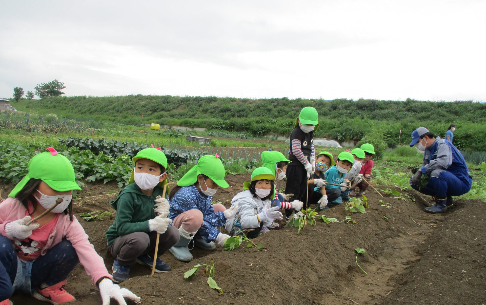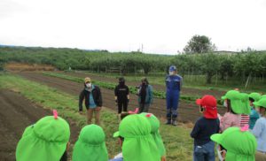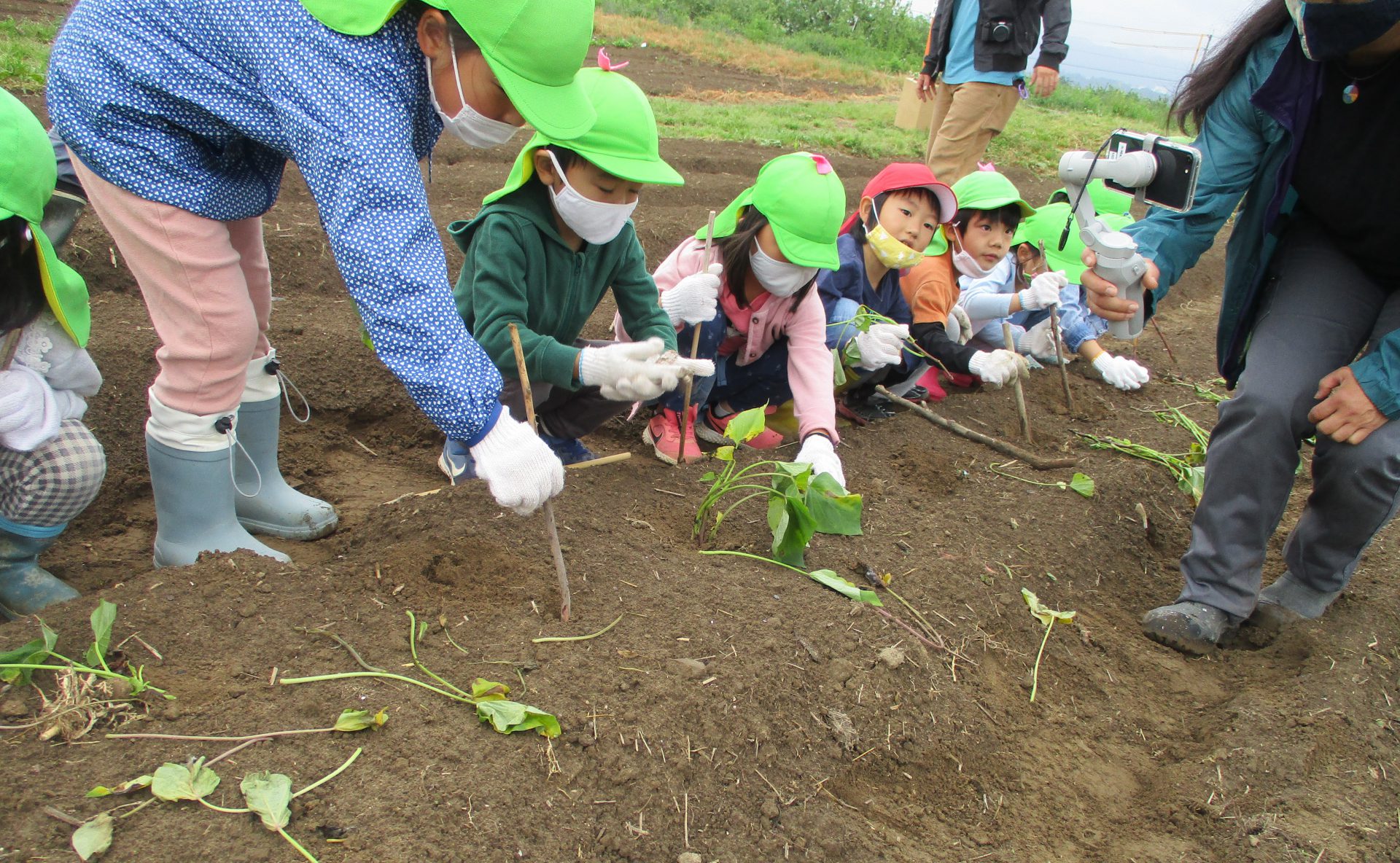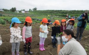 実は初めての畑で、土に手を突っ込めない子も(やまほいくなのに・・)棒でなら平気平気。