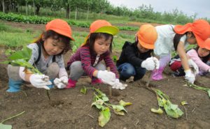 私たち保育士は、いつも寝かせて植えることばかりでしたが、べつに立ててもいいんだ。と今更のように気づいたのでした。いろんな経験から気づくことって、子どもにはもちろん、大人にも大切!