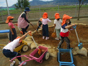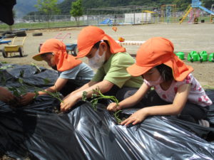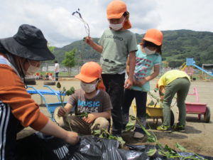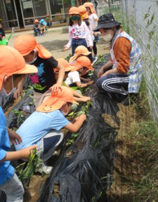 畑作りを通して食に興味を持ち、食べ物を大切にする気持ちや用意してくれる人への感謝の気持ちが自然に芽生えるようにと願っています。