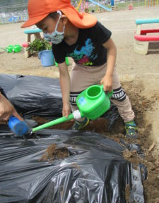 最後に水をたっぷりあげて・・・大きくなあれ!