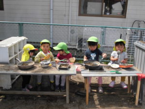 大好きなお母さんのまねっこして、今日は何作ろうかなあ・・・