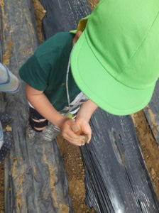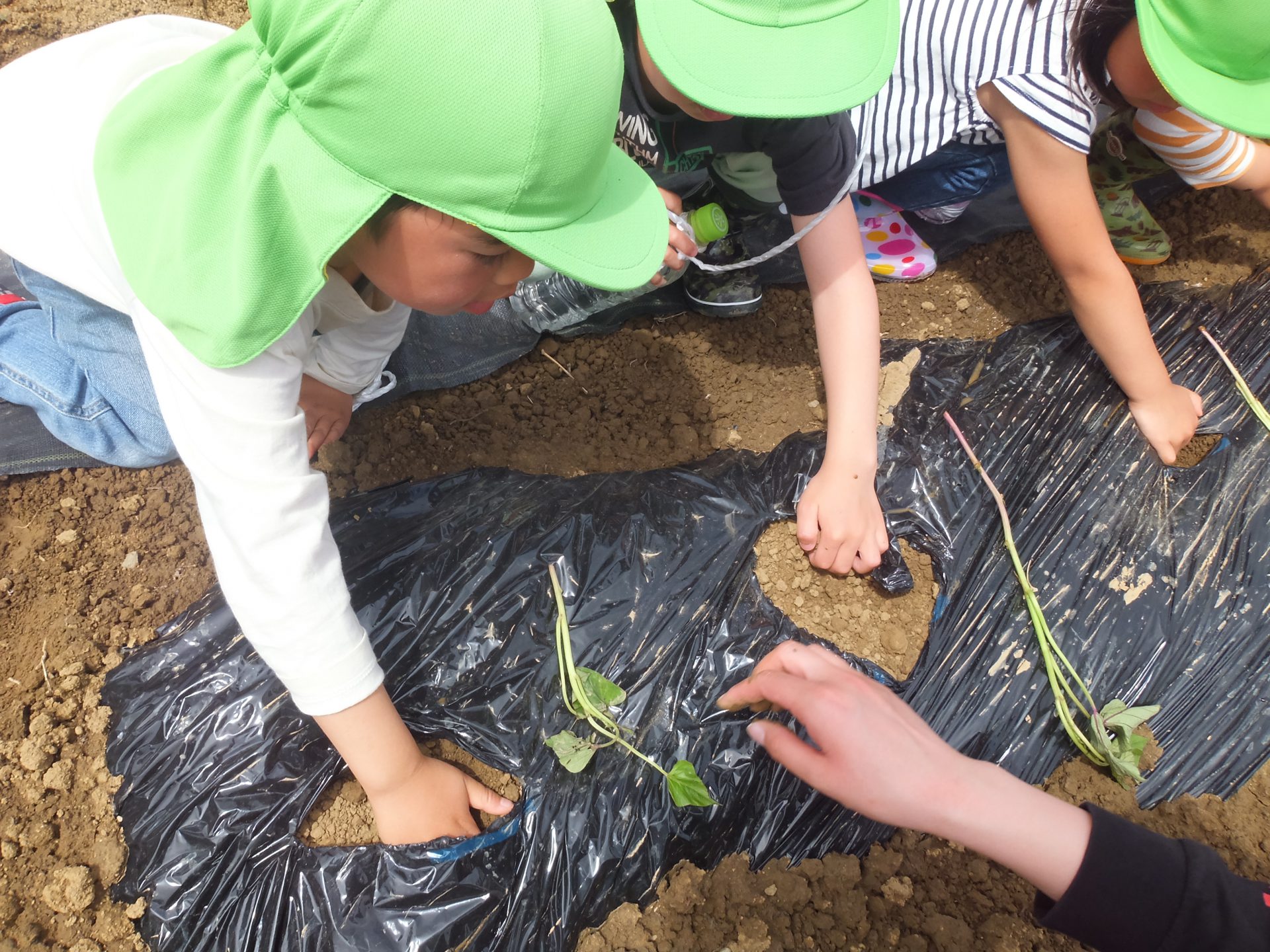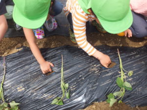 「おいもの苗を植える穴を掘ってね。」と保育士。