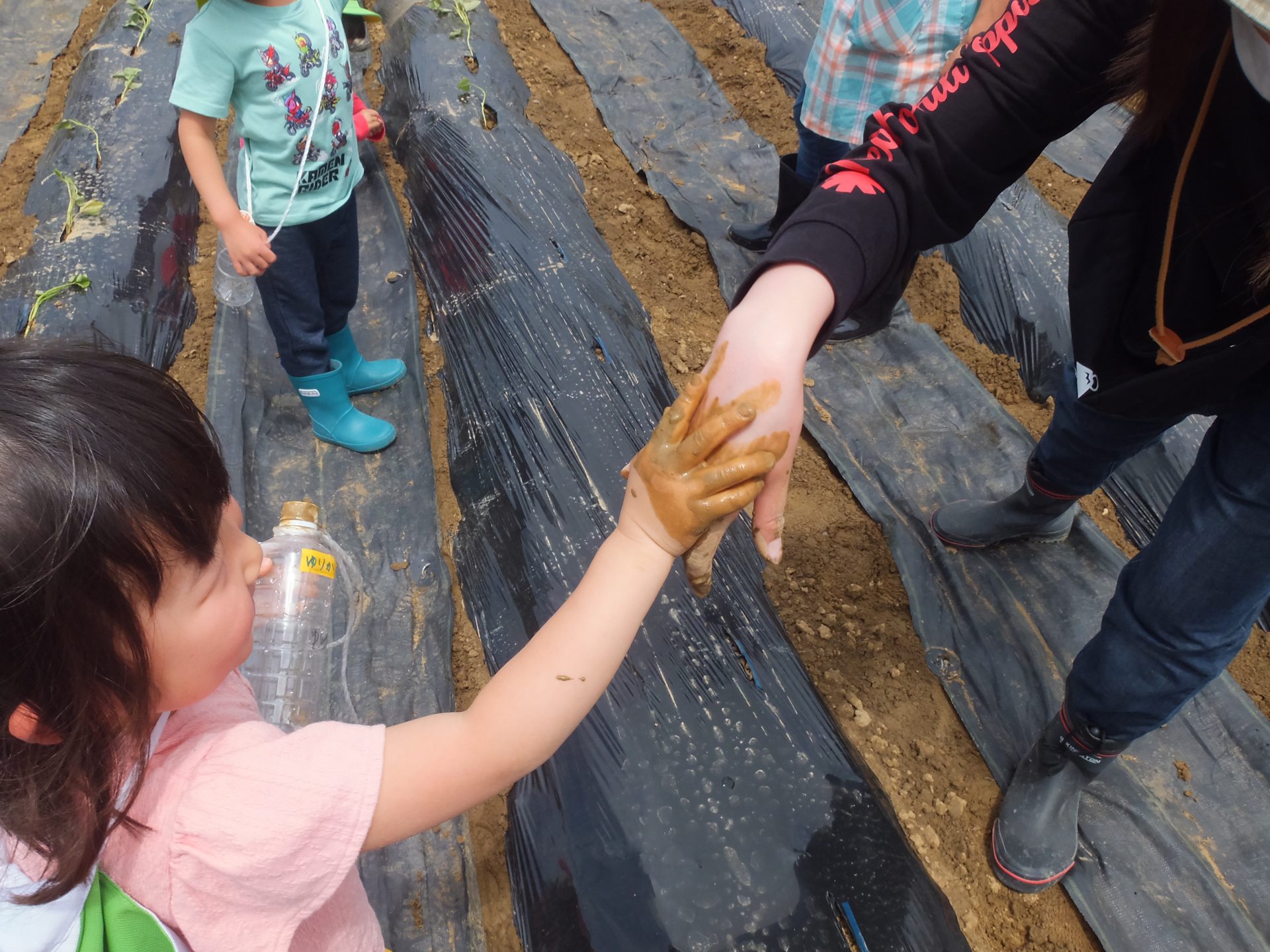 おいもの苗植えよりも、泥んこに興味津々。