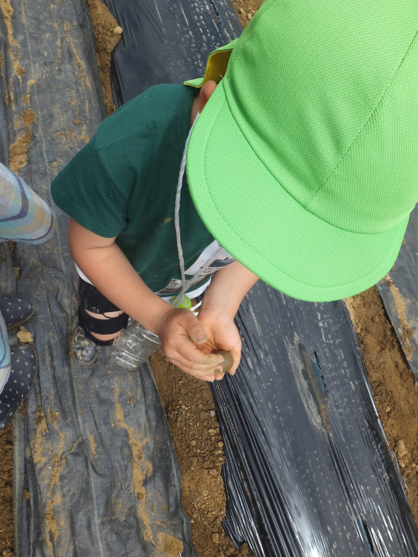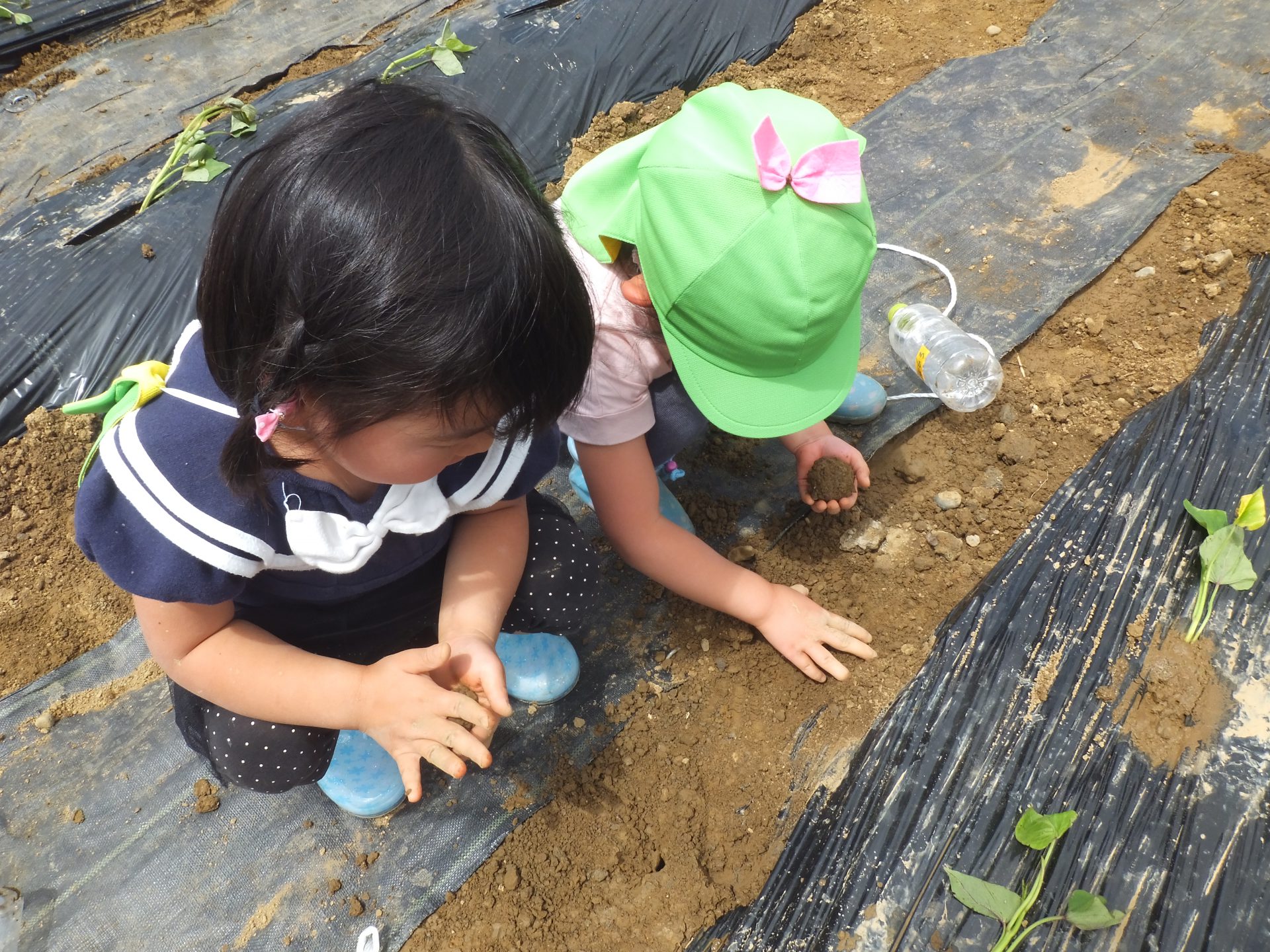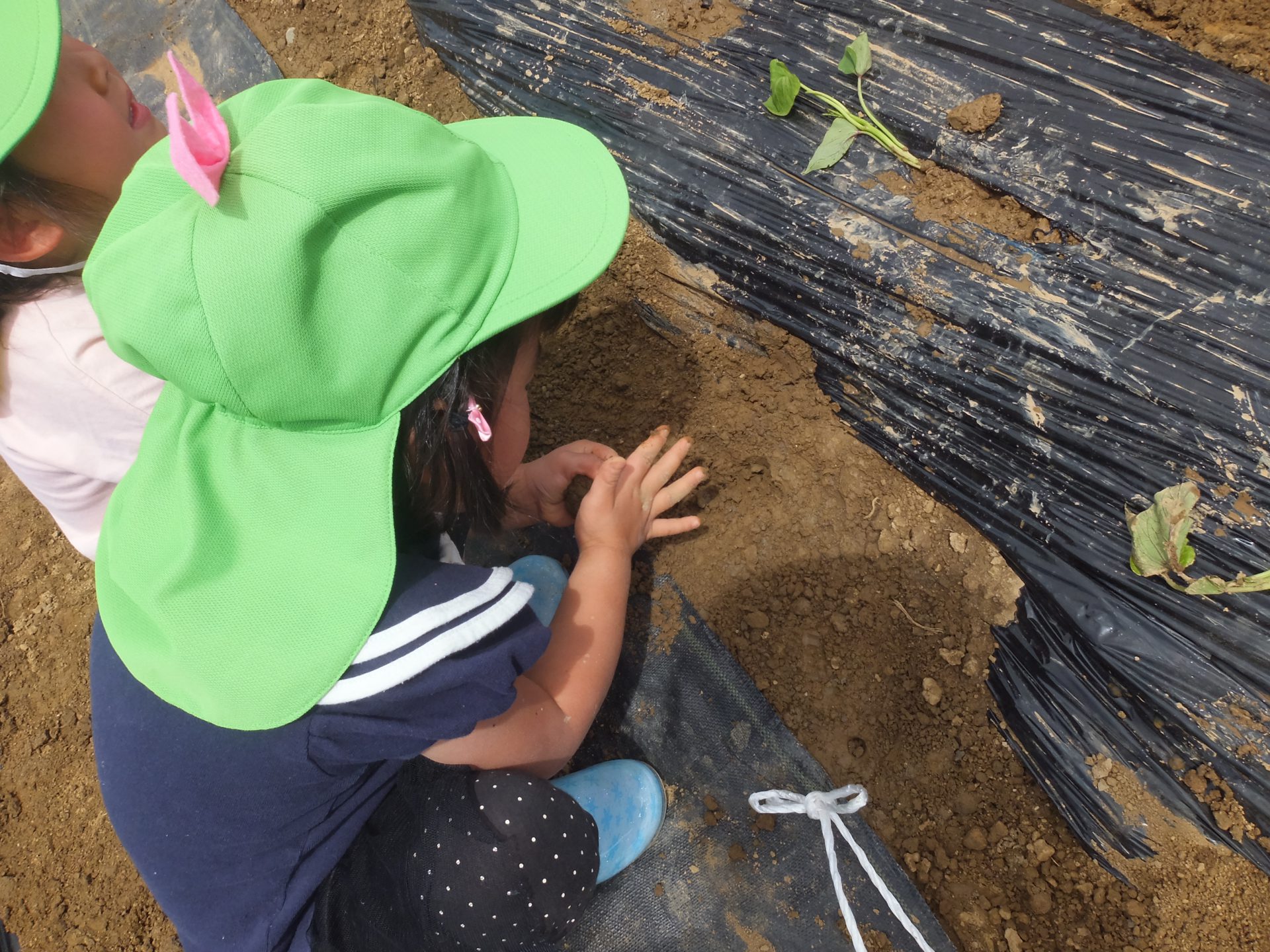 さつまいもの苗植えよりも、土や泥んこの感触が楽しい様子の子ども達。とてもかわいらしかったです。