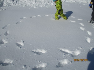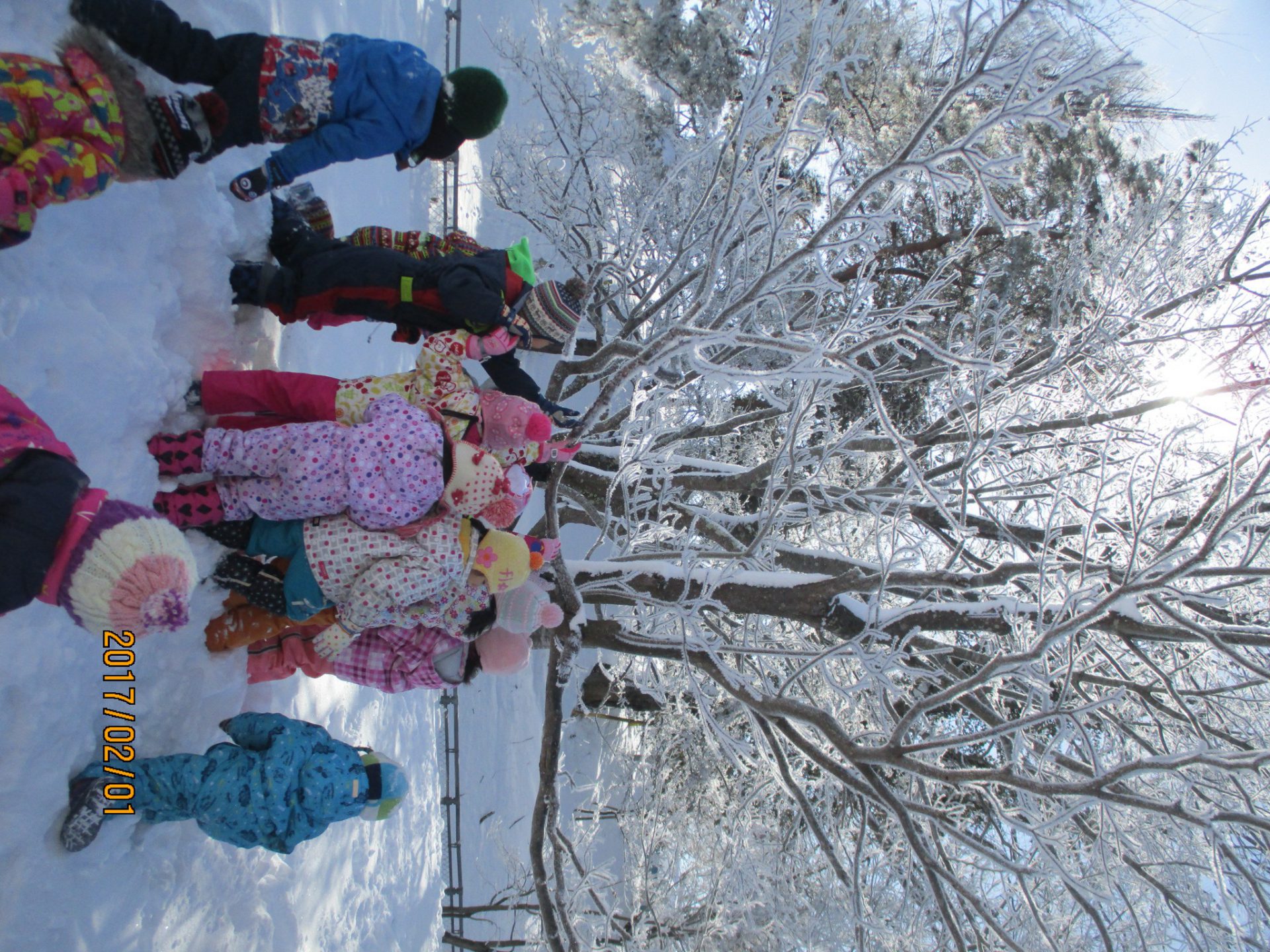 今日は、初めて保育園の裏にある雪山に遊びに行きました。