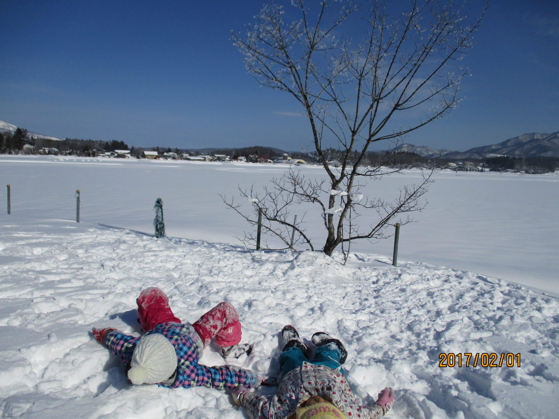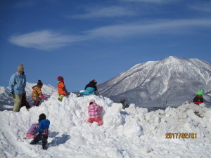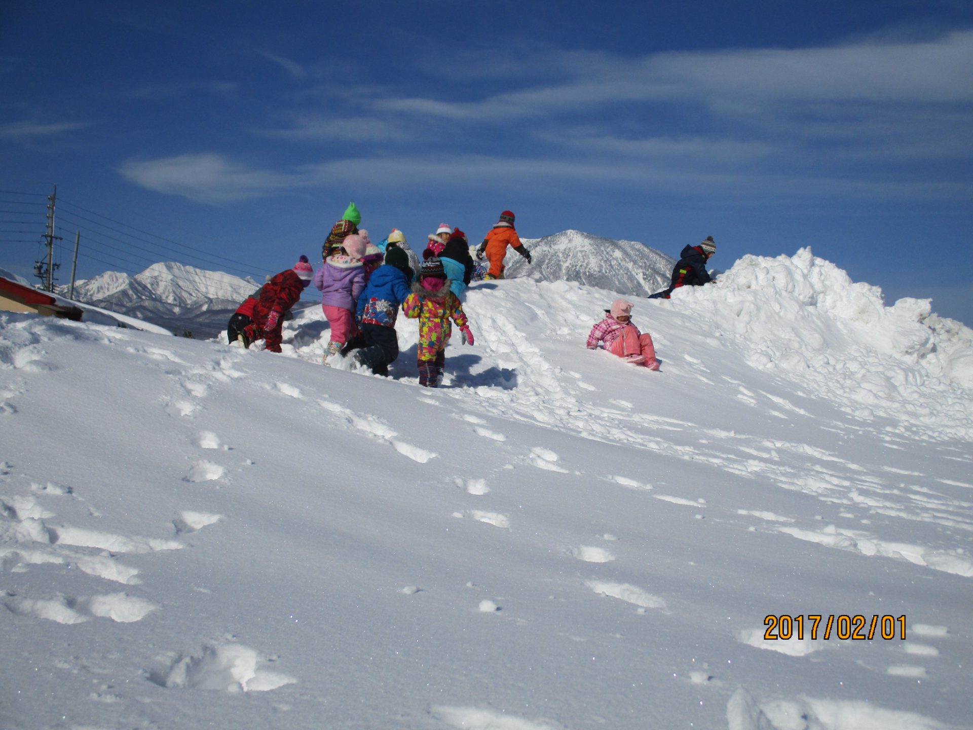空気が澄み渡っていて、雪山から近くの山が綺麗に見えたので「僕のお父さんは妙高山でお仕事してるんだ。」「黒姫山のスキー場行ったことある?」「あるよ!楽しいよね。」と子ども達の話も盛り上がっていました。
