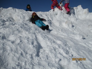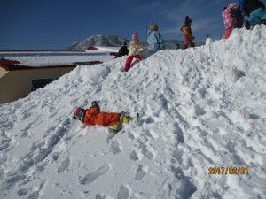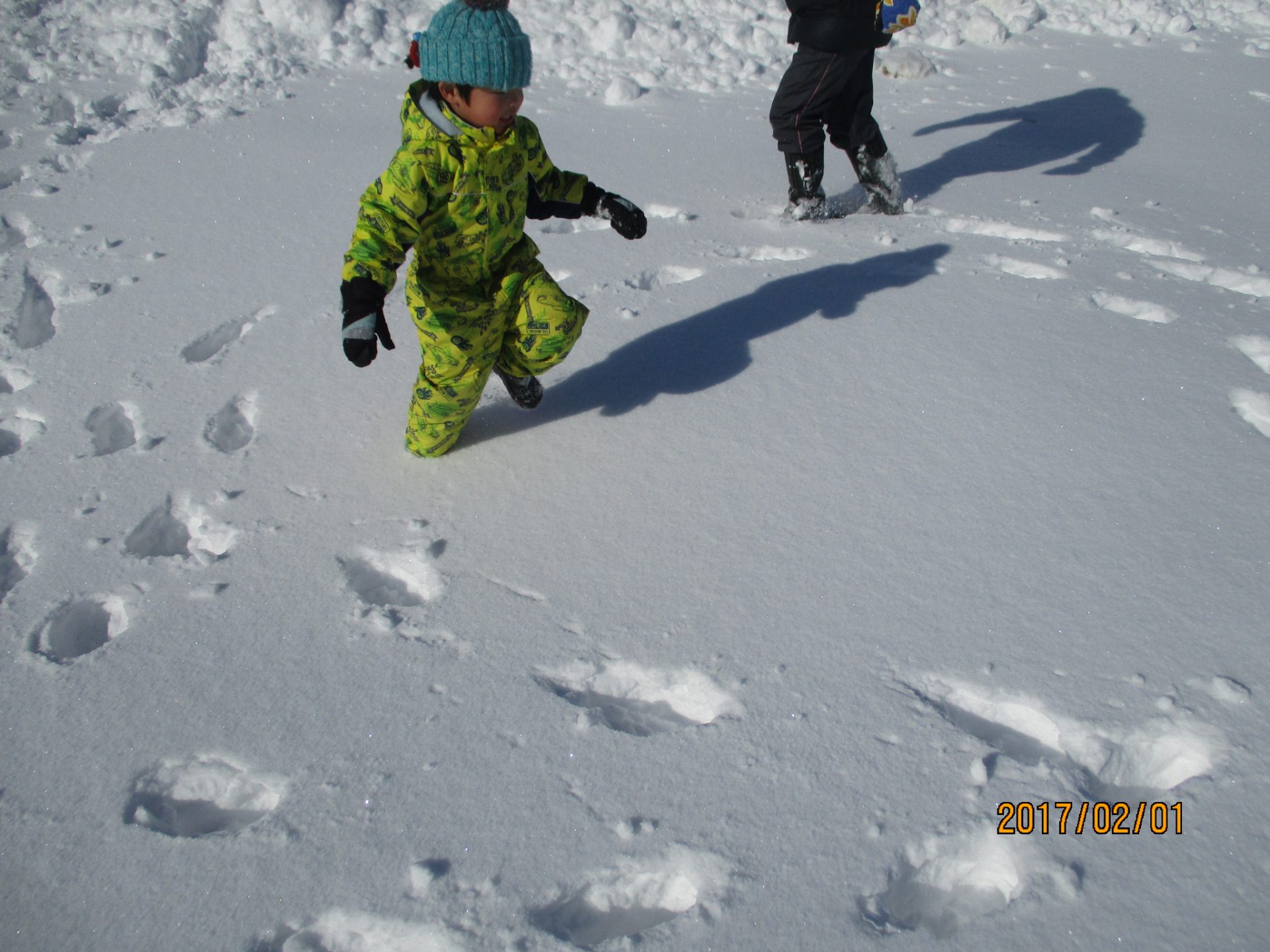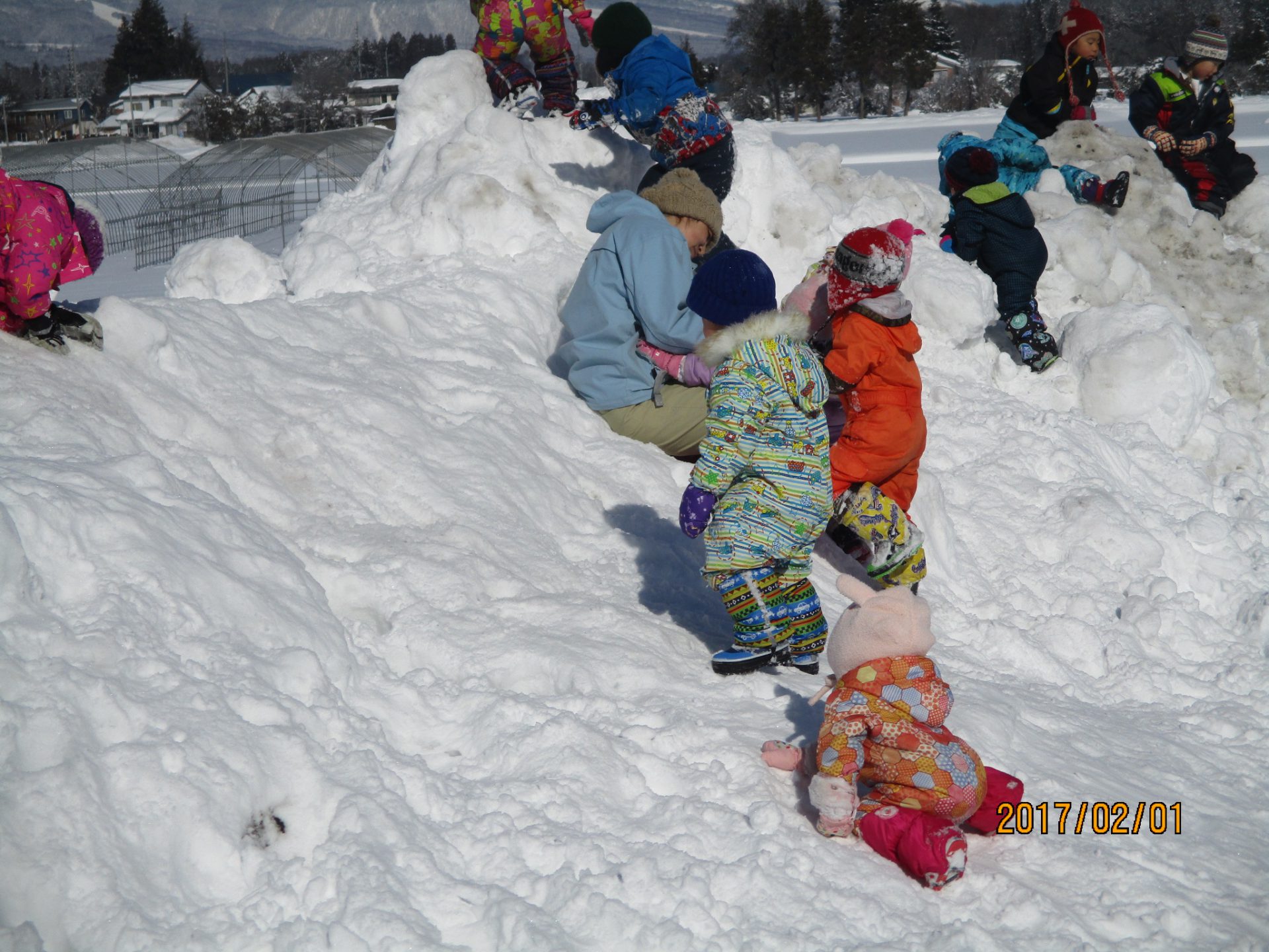 園庭にある雪山を何度も上り下りして体の使い方も上手になっていたので、簡単に上ることができました。