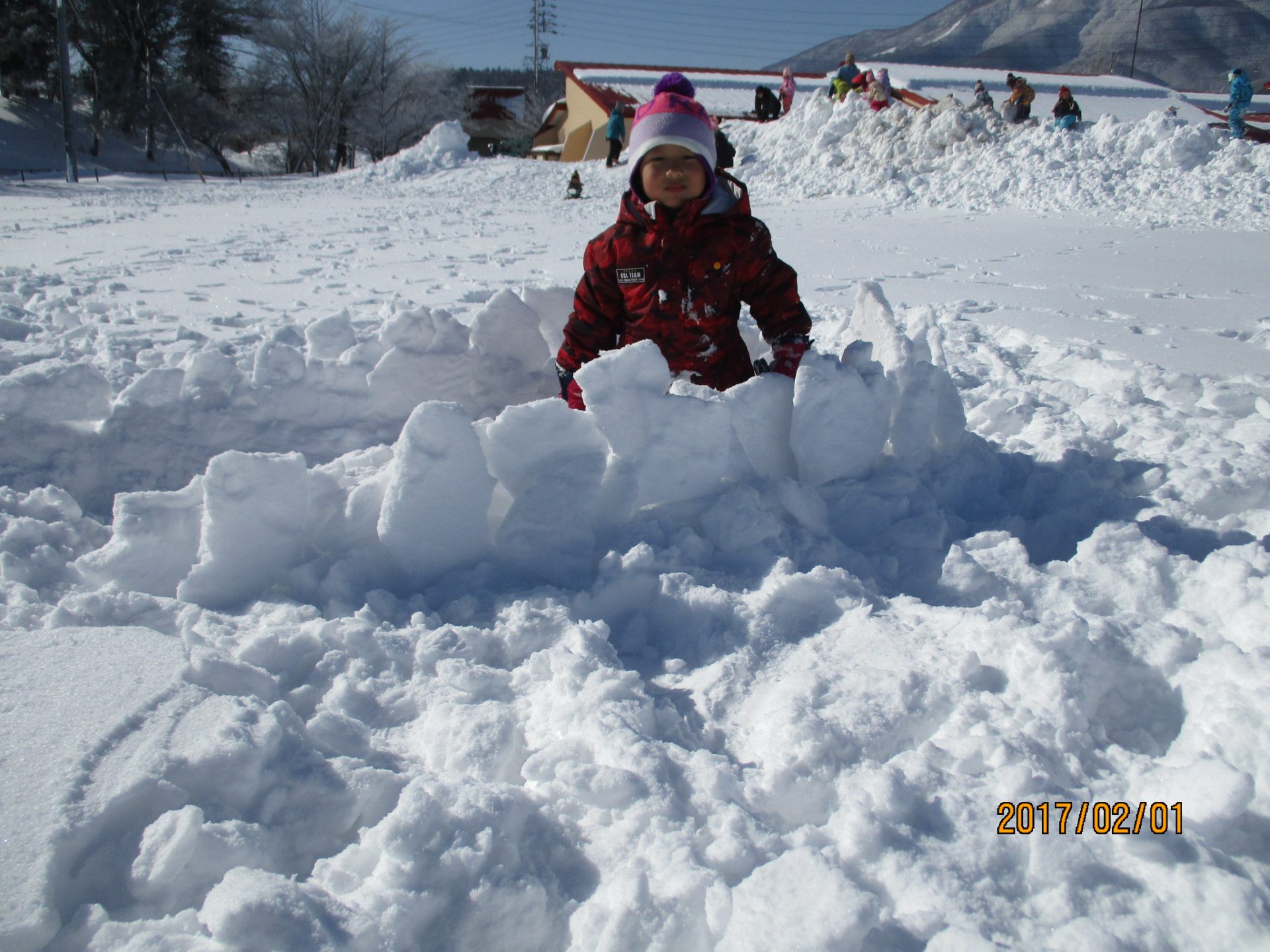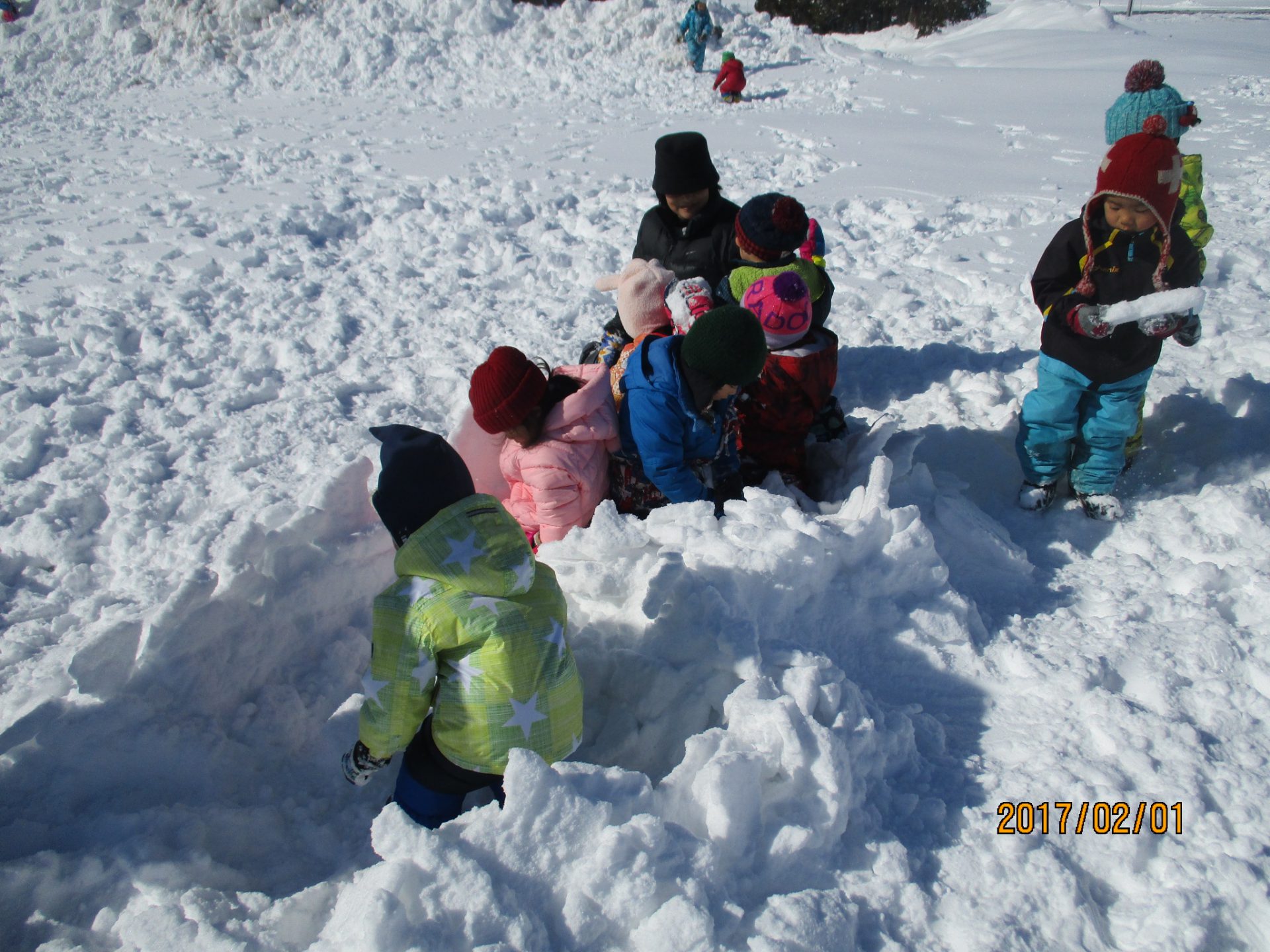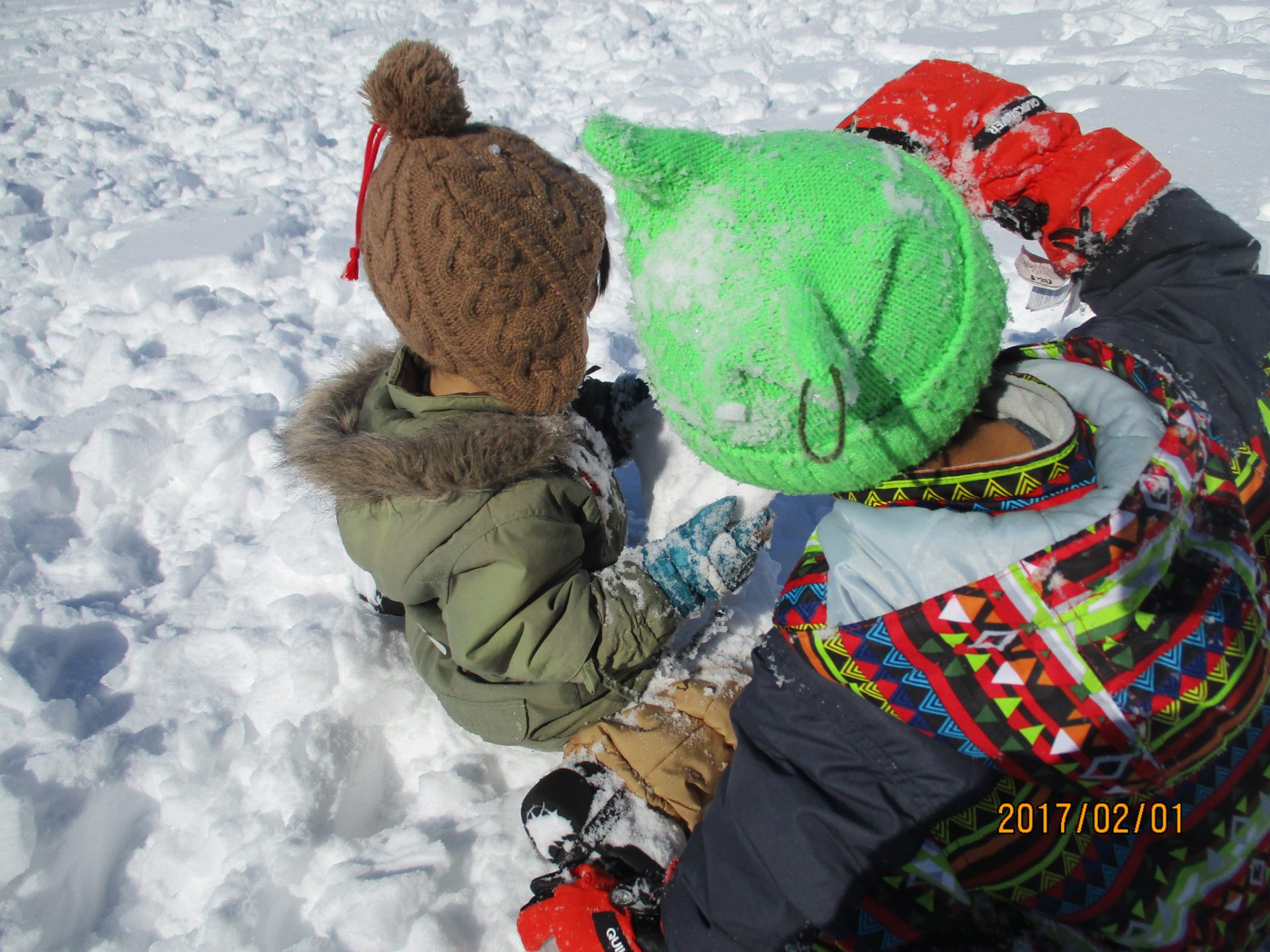 雪山の下では、雪の表面が固くなり様々な形を作って楽しむことができました。